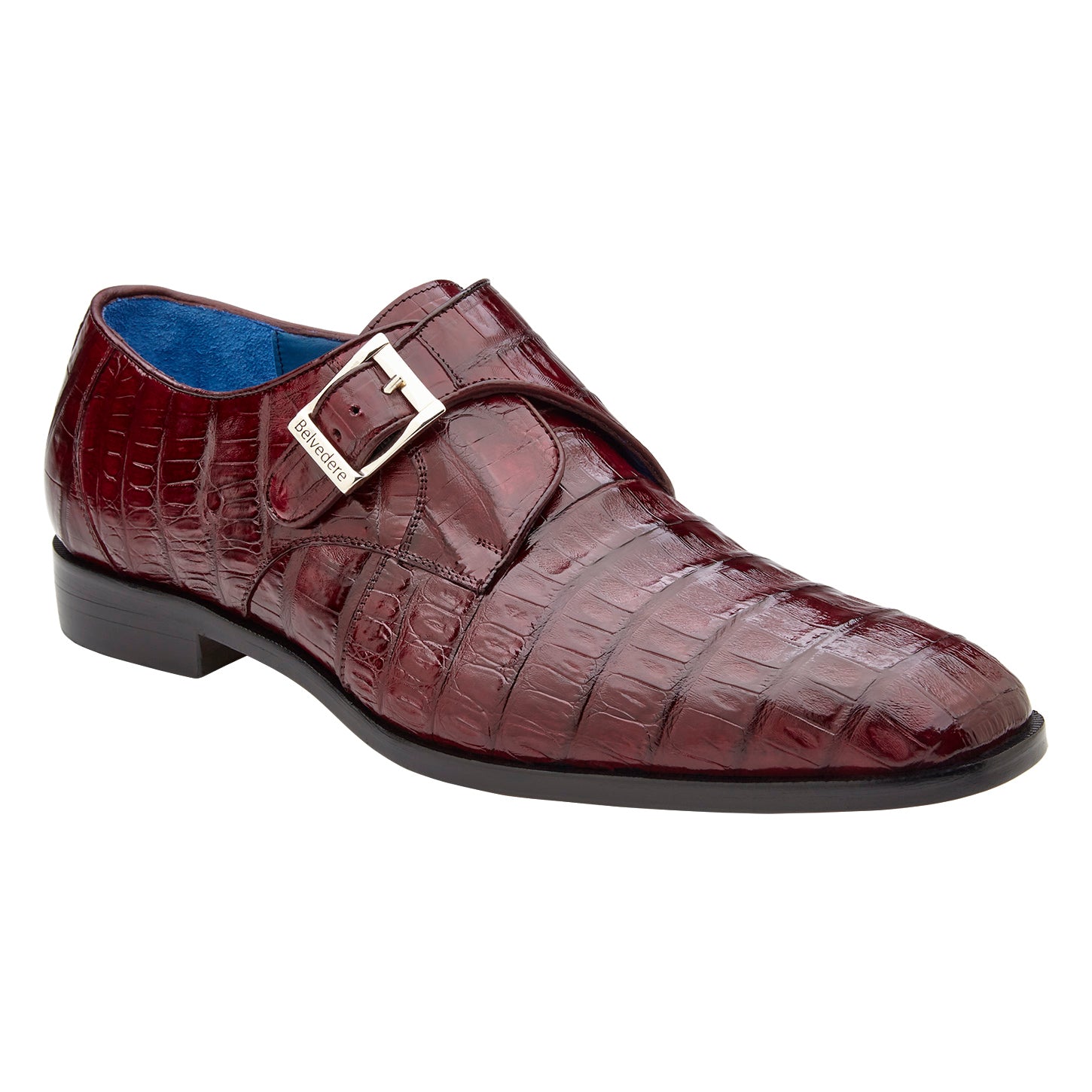 Belvedere Angelo Genuine Caiman Crocodile Monk-Strap Shoe in Burgundy