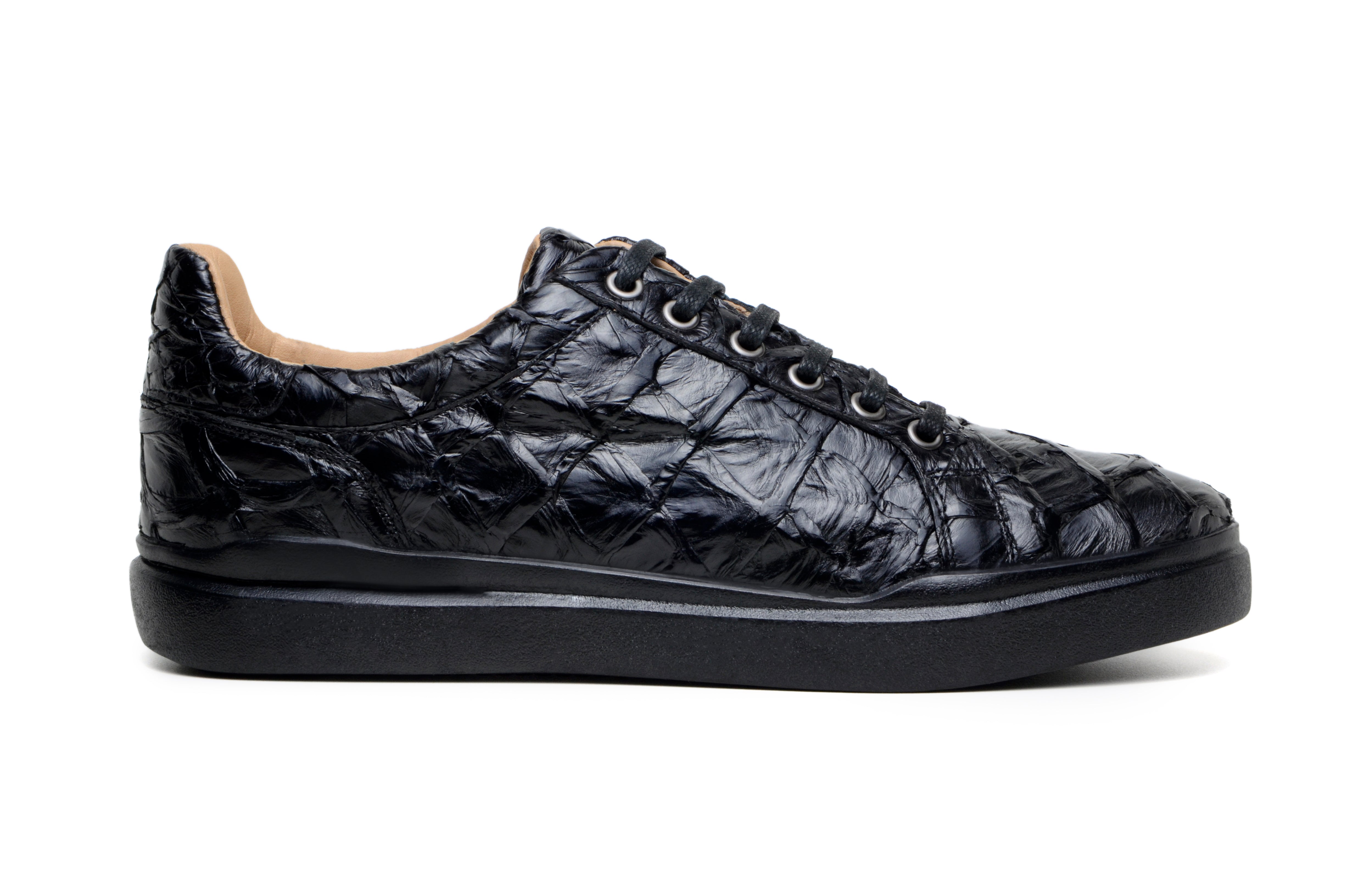 Belvedere Kingstone Exotic Genuine Pirarucu Leather Sneakers in Black