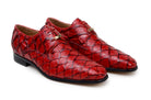 Belvedere Renzo Exotic Pirarucu Leather Lace-Up Moc Toe Shoes in Red