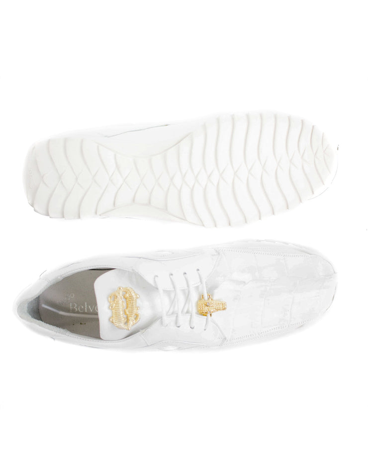 Belvedere Vasco Genuine Hornback Caiman & Italian Calf Sneakers in White