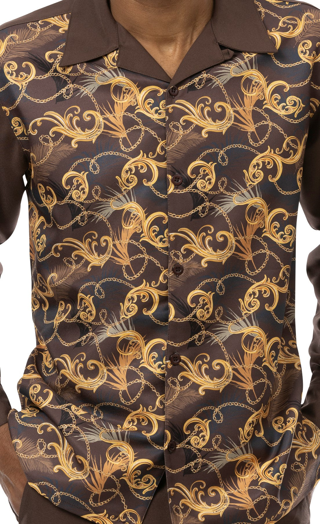 Bequeathal Collection: Chocolate Print Design Walking Suit 2 Piece Long Sleeve Set 2374
