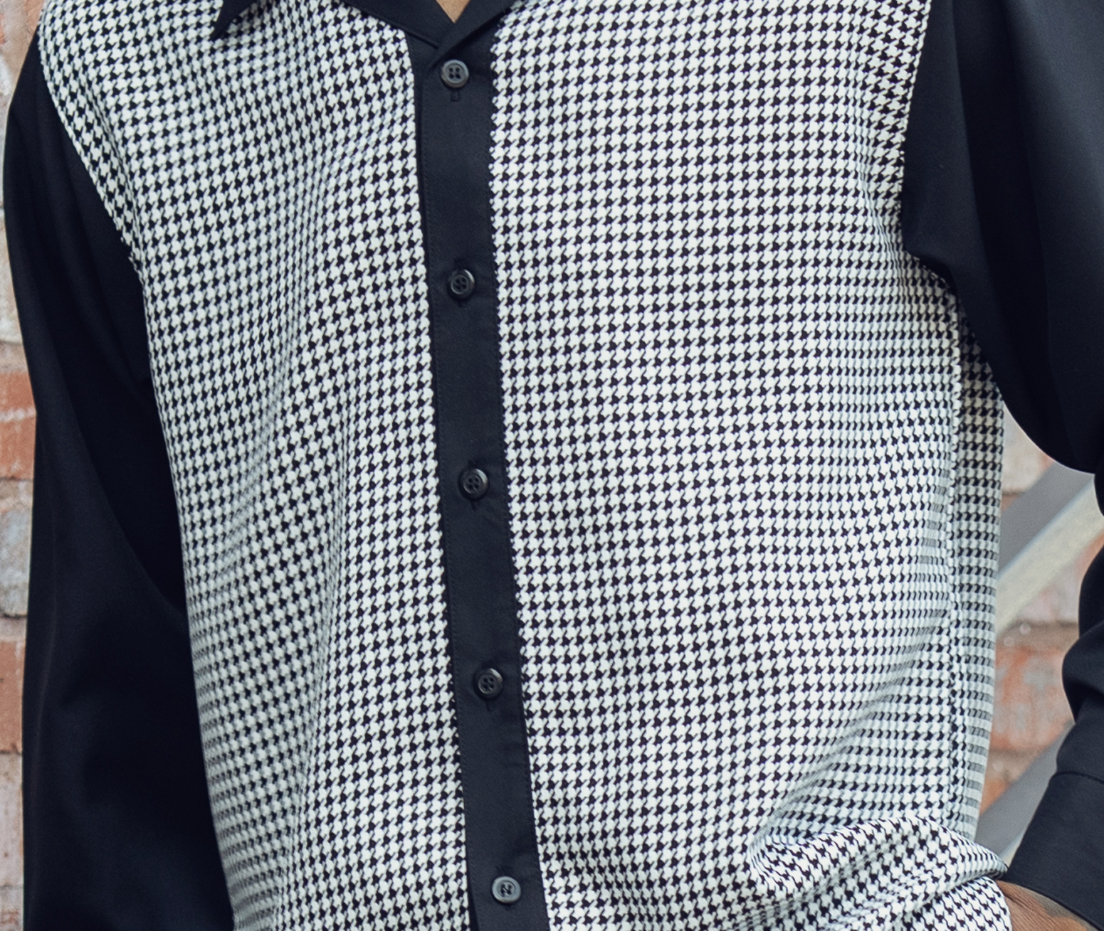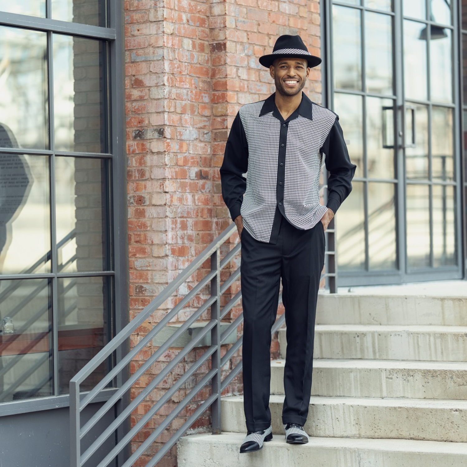 Montique Black Houndstooth Design 2 Piece Long Sleeve Walking Suit Set 2255