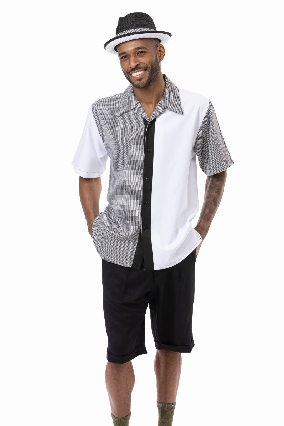 Black Houndstooth Vertical Walking Suit 2 Piece SHORTS SET 72211