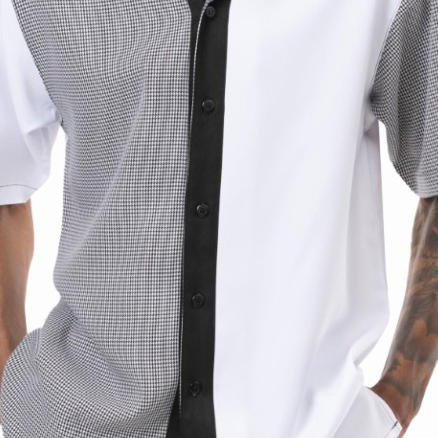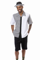 Black Houndstooth Vertical Color Block Walking Suit 2 Piece SHORTS SET 72211