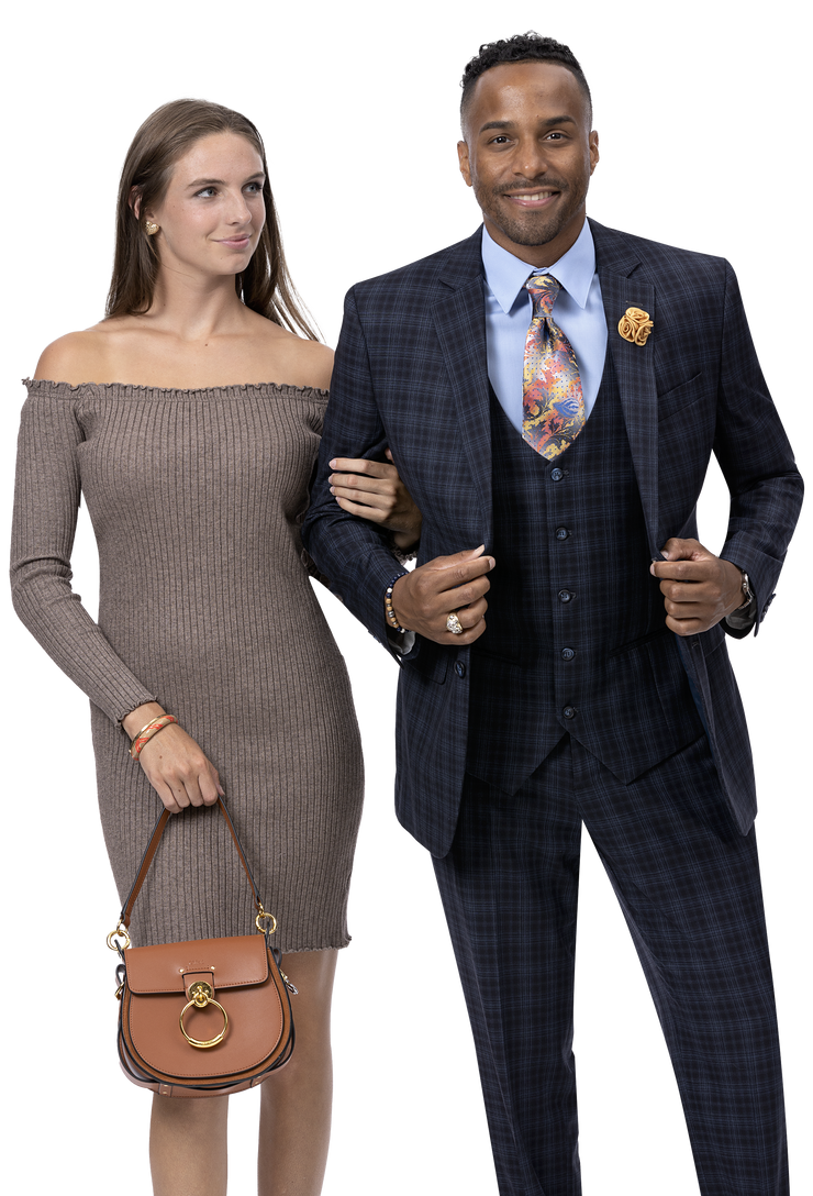 Black/ Navy Three Piece Regular Fit Fashion Suit M2778 - FINAL SALE Size 46R/40 Waist