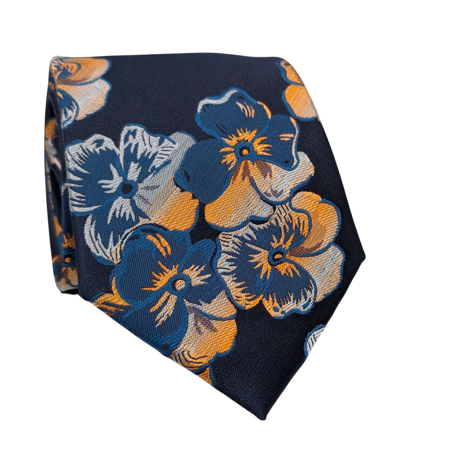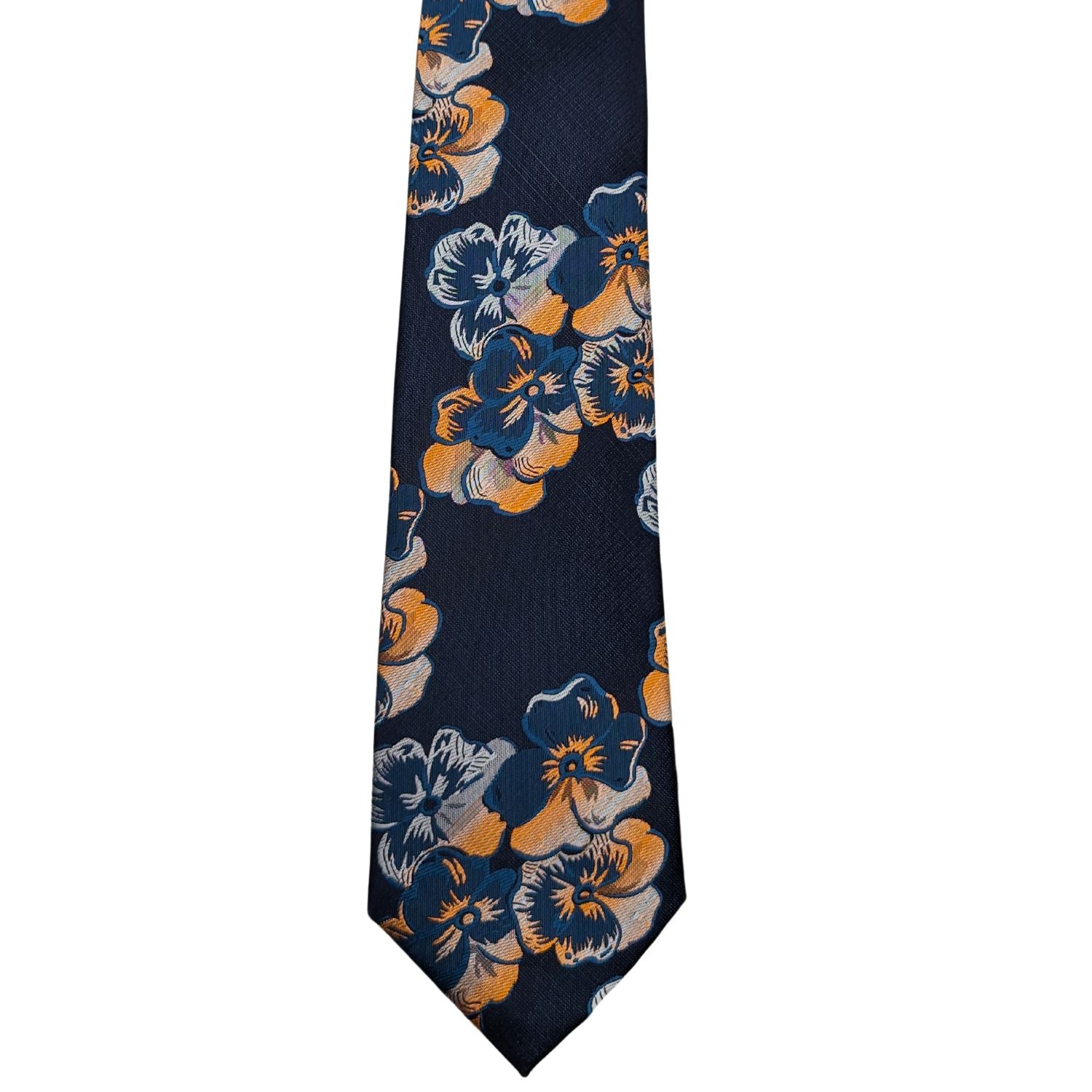 Introducing the Blossom Array Collection's Vibrant Navy Floral Tie, a piece that seamlessly combines vibrant charm with distinguished sophistication. This tie, crafted from 1200 needle refined polyester, is not just an accessory but a statement of style. It features an intricate floral pattern in a striking shade of Navy that is sure to catch the eye and command attention. Perfect for any occasion, this tie is designed to complement both your professional and social ensembles, adding a splash of color and personality to any look.