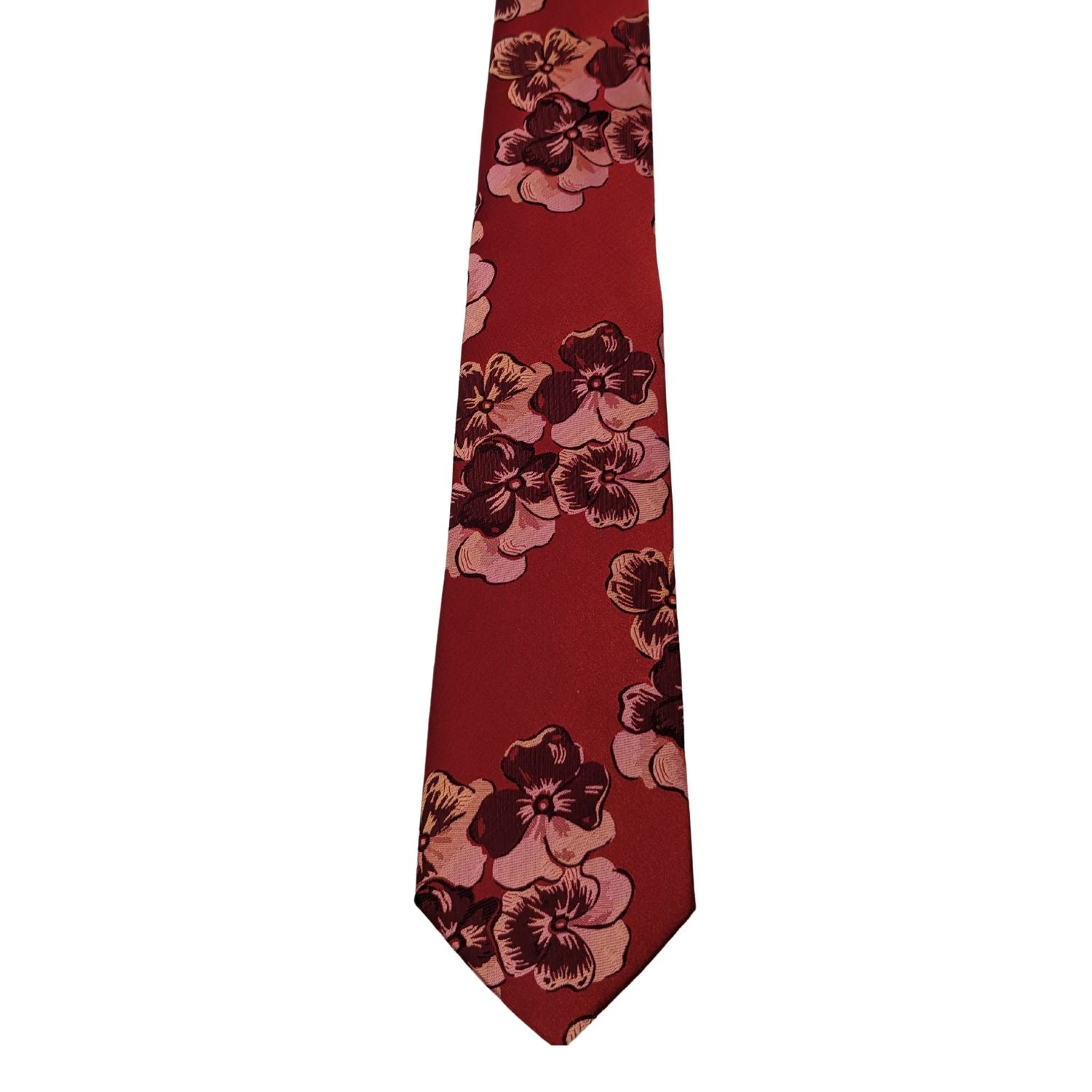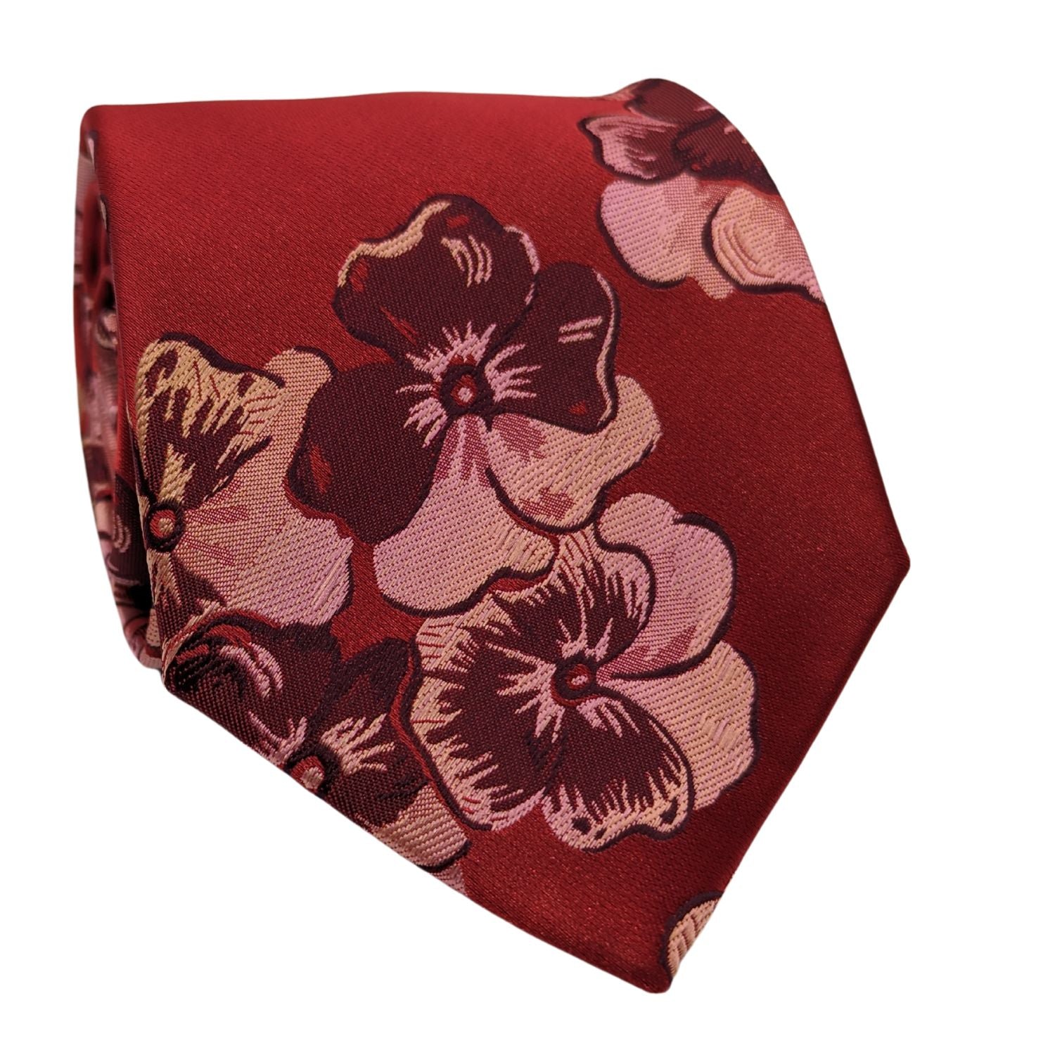 Introducing the Blossom Array Collection's Vibrant Red Floral Tie, a piece that seamlessly combines vibrant charm with distinguished sophistication. This tie, crafted from 1200 needle refined polyester, is not just an accessory but a statement of style. It features an intricate floral pattern in a striking shade of red that is sure to catch the eye and command attention. Perfect for any occasion, this tie is designed to complement both your professional and social ensembles, adding a splash of color and personality to any look.