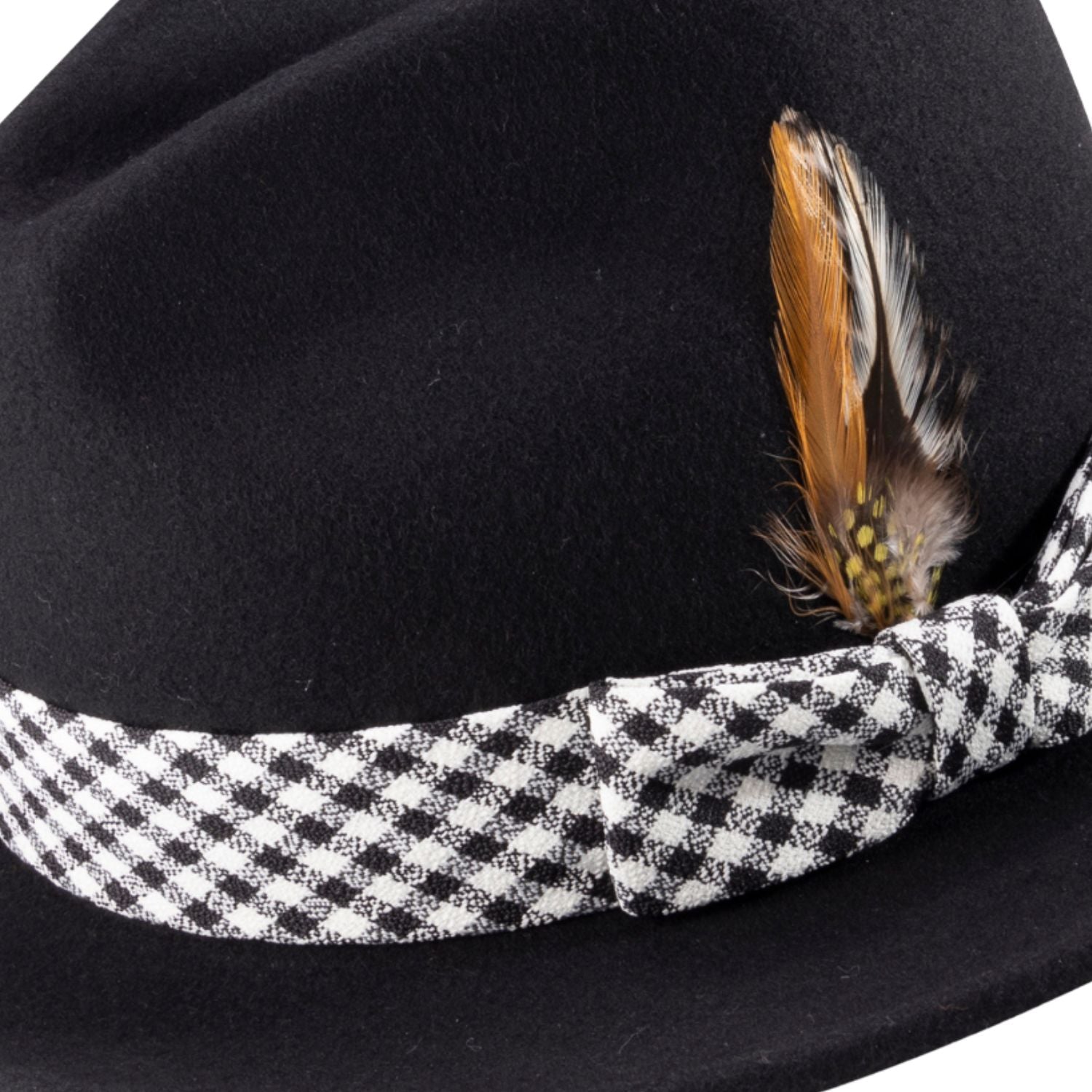Blotchy Collection: Montique Black 2 ½" Brim Wool Pinch Fedora With Matching Plaid Ribbon Hat