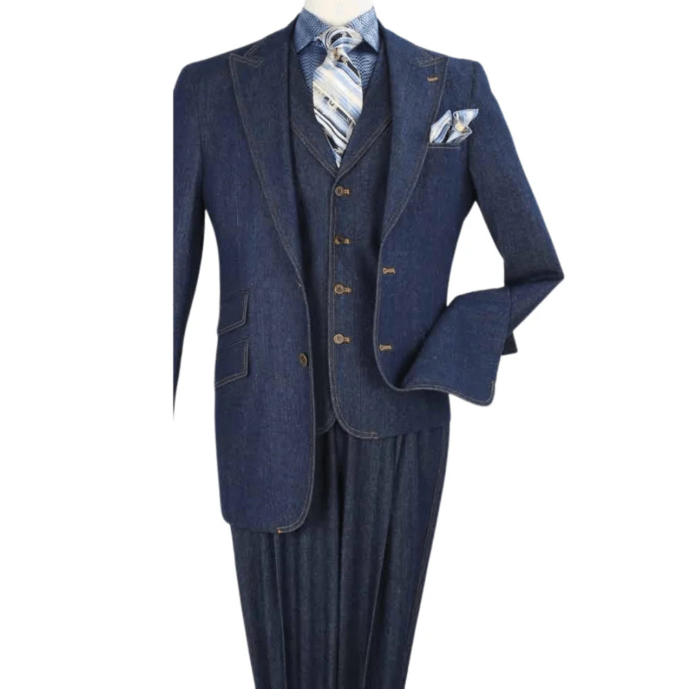 Blue 3-Piece Fashion Denim Suit – Modern Fit