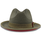 Brillique Collection: Olive Stingy Brim Red Bottom Braided Pinch Fedora Hat H-77
