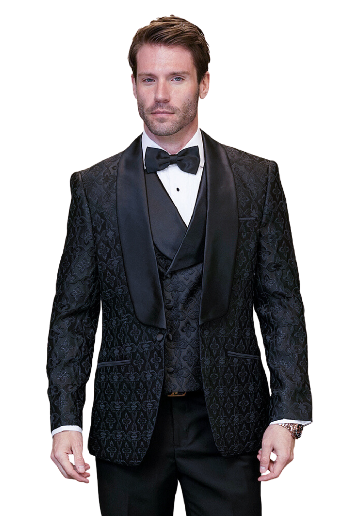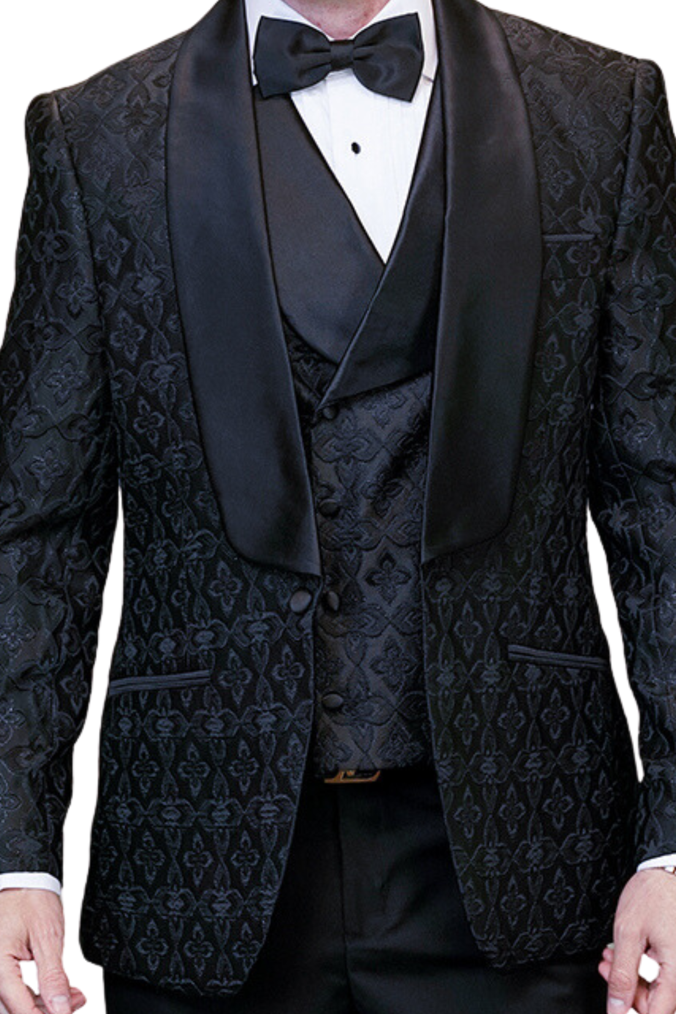 Elevate your evening game with our Black 3-Piece Tuxedo from the Bronte Bliss Collection. Designed with a dash of finesse, this ensemble features satin pants with a side seam trim that exudes sophistication. And don't forget the bow tie — it's the cherry on top for your perfect formal look.