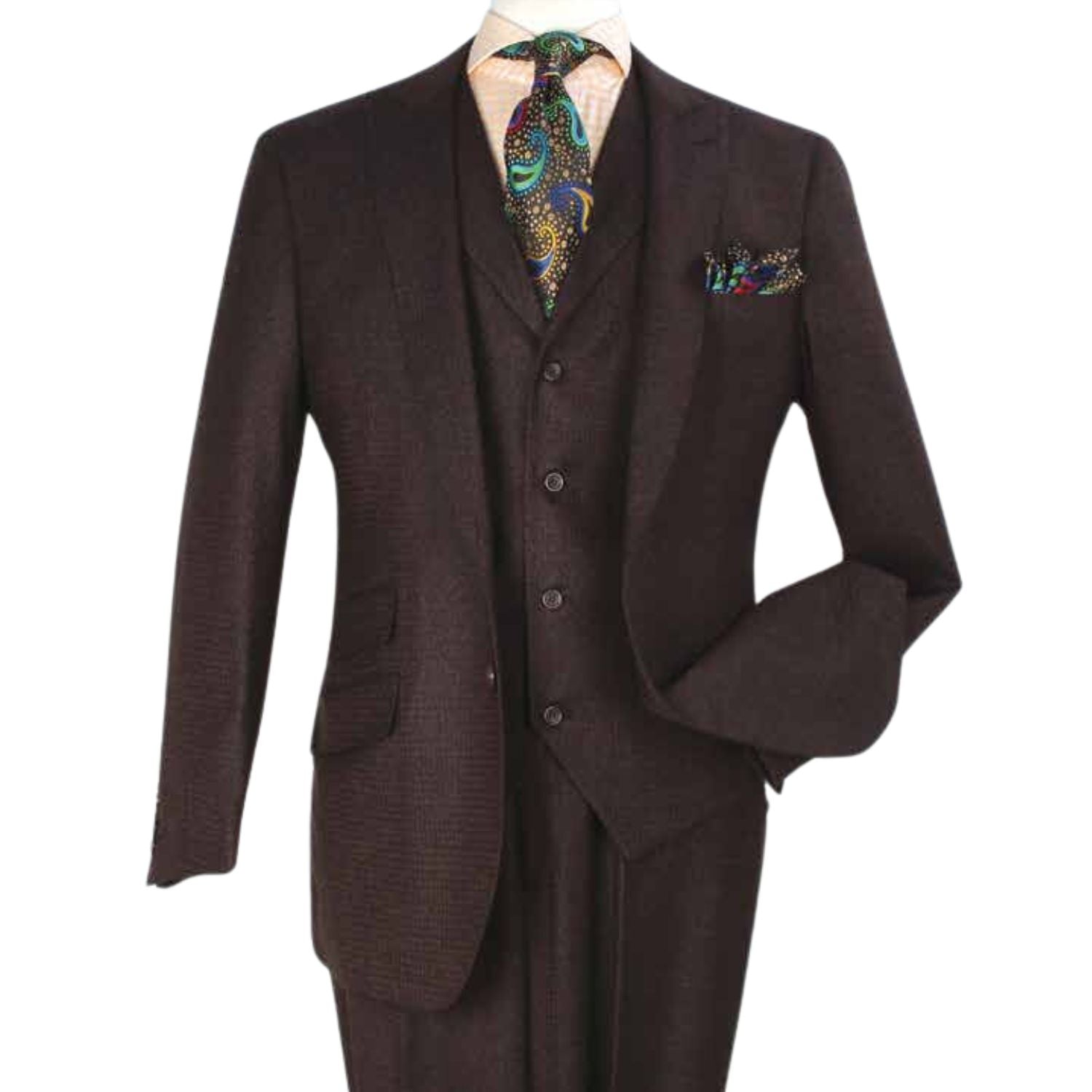 Brown High Fashion Three-Piece Wool Suit with Vest