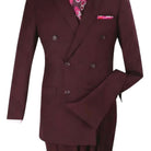 Burgundy Classic Double-Breasted Suit Luxury Wool Feel with Side Vents