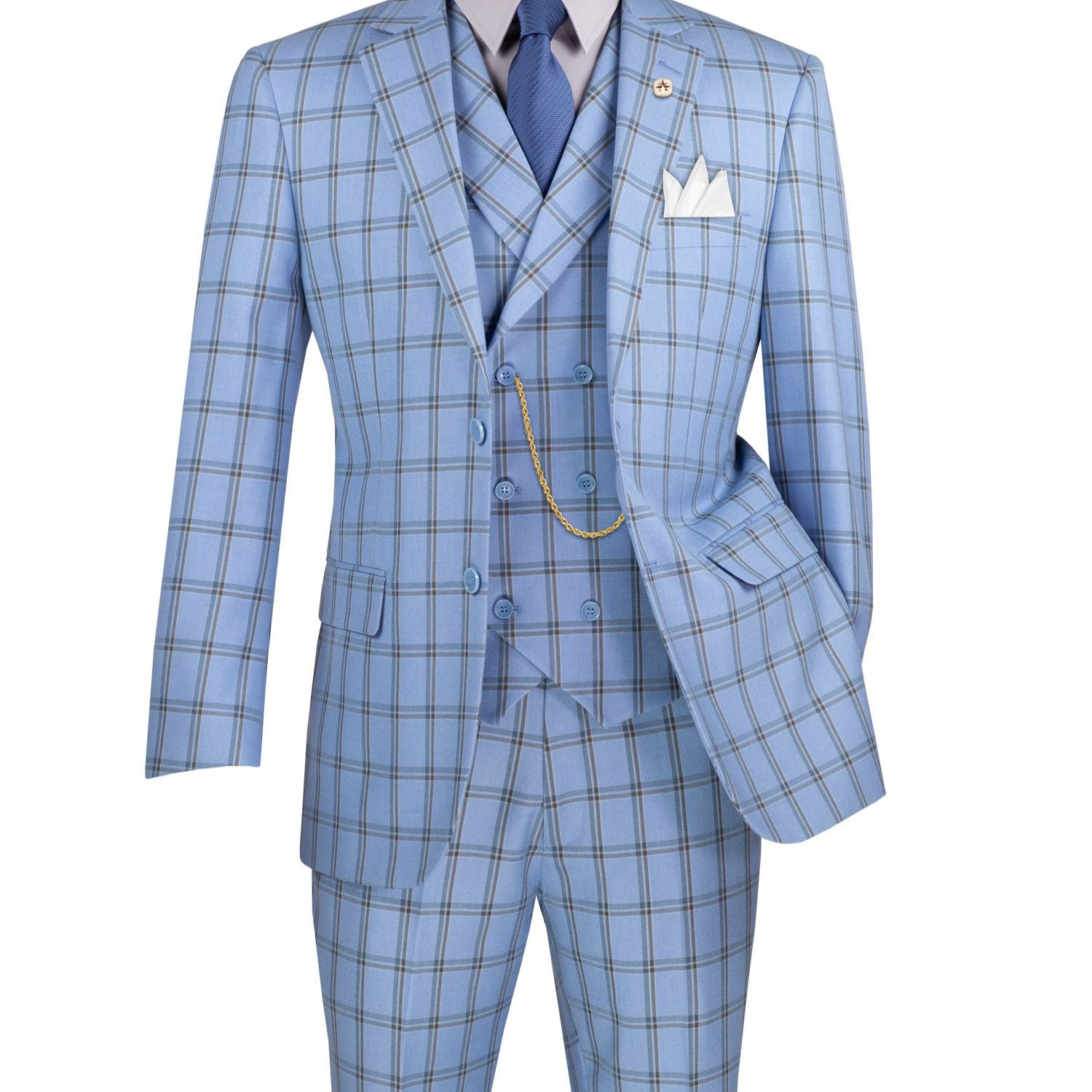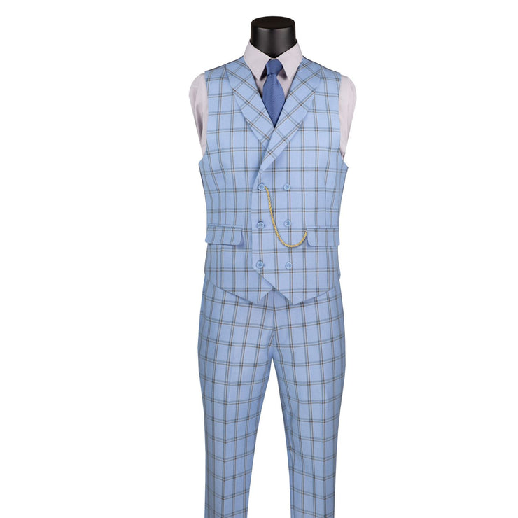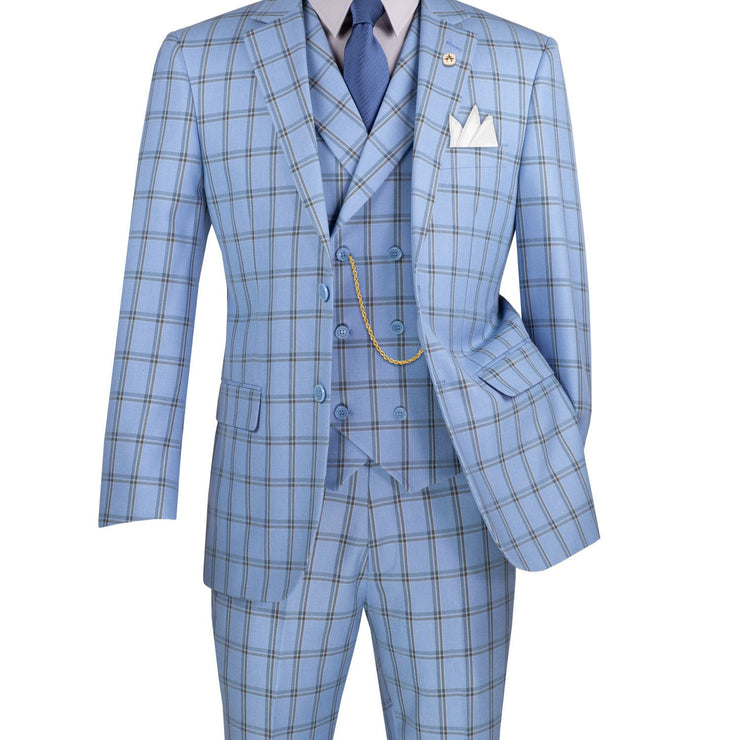 Cadellus Collection: Light Blue 3-Piece Windowpane Modern Fit Suit - Luxurious Wool Feel