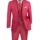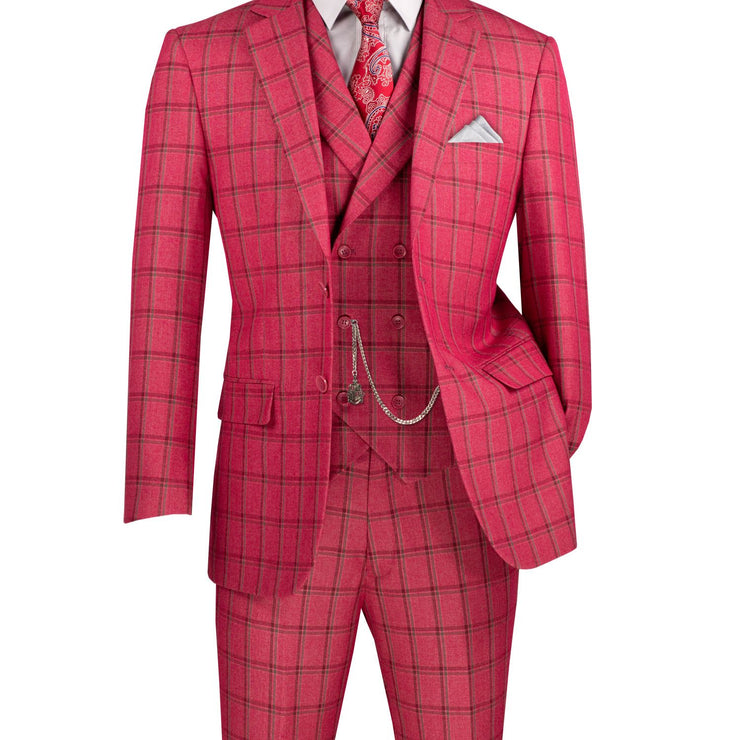 Cadellus Collection: Raspberry 3-Piece Windowpane Modern Fit Suit - Luxurious Wool Feel