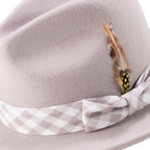Calico Collection: Montique Ash Grey 2 ½" Brim Wool Pinch Fedora With Matching Plaid Ribbon Hat