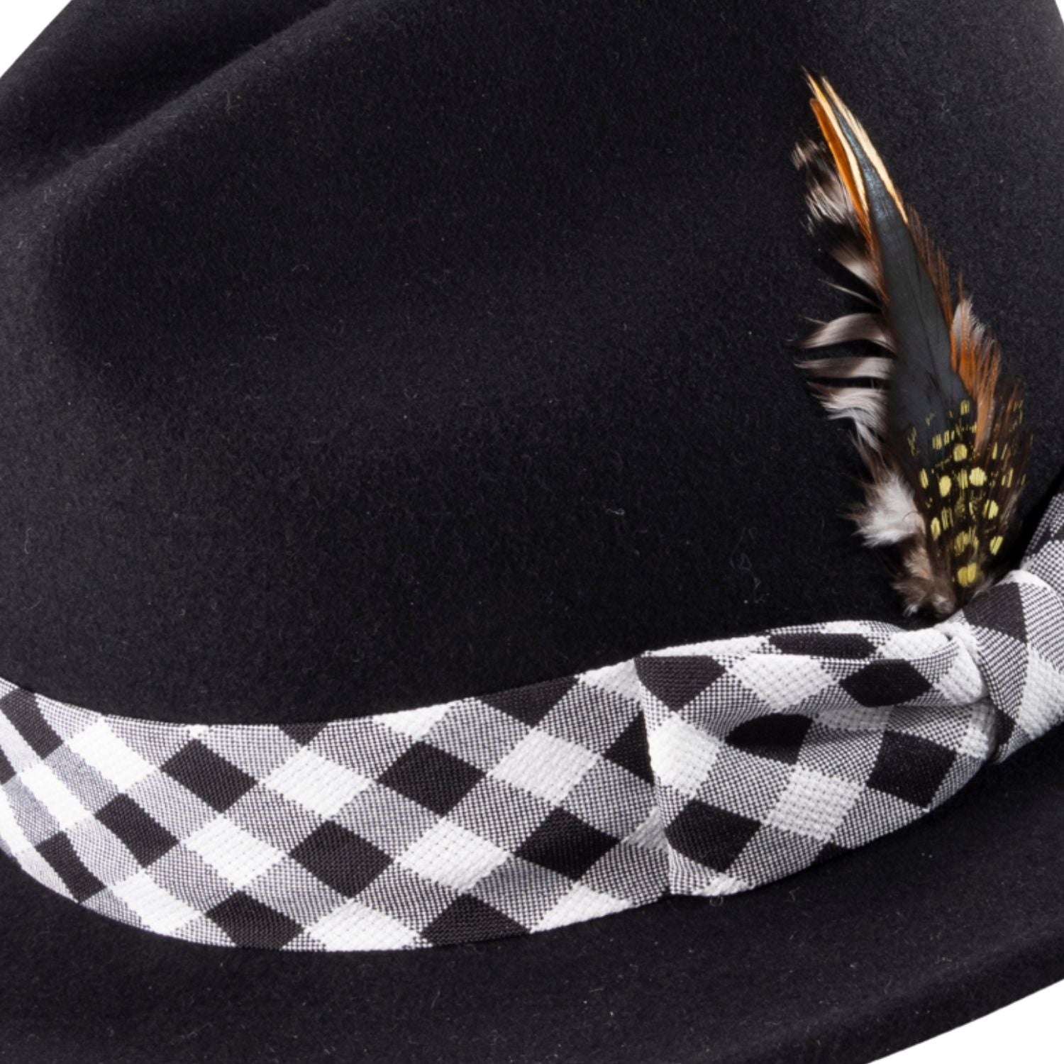 Calico Collection: Montique Black 2 ½" Brim Wool Pinch Fedora With Matching Plaid Ribbon Hat
