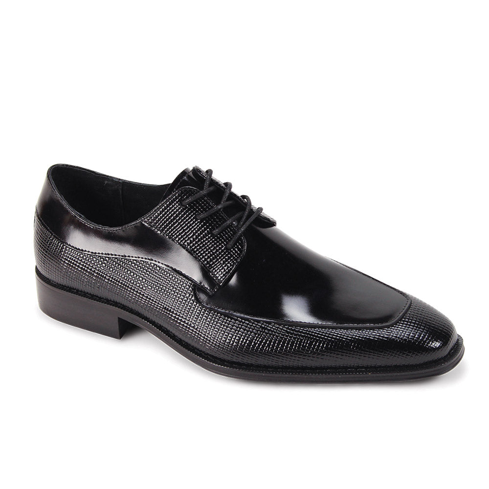 Cavoti Collection: Men's Black Moc Toe Embossed Leather Lace-Up Shoes