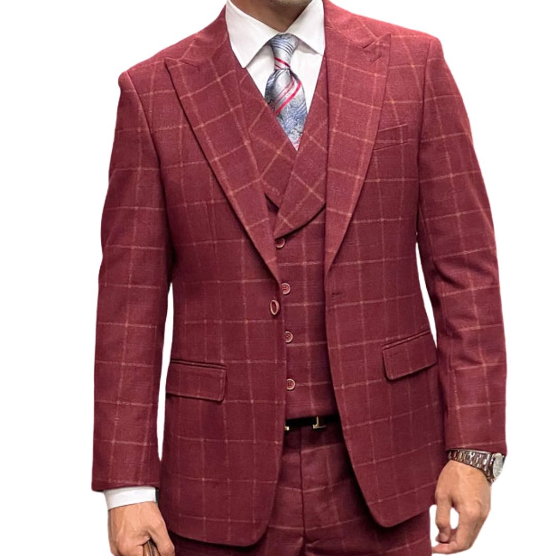 Celestio Collection: Burgundy 3-Piece Peak Lapel Suit