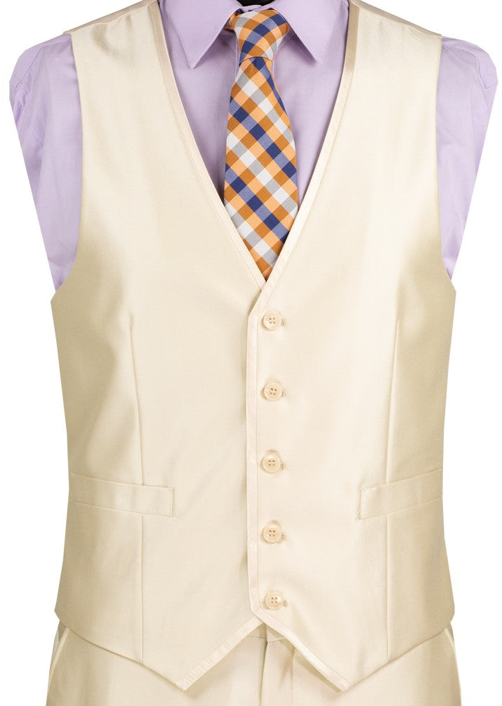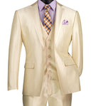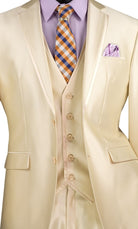 Centaurus Collection: Champagne Beige 3-Piece Solid Satin Look Slim Fit Suit with Fancy Vest - FINAL SALE Size 52L/47 Waist