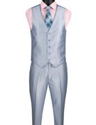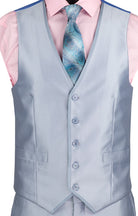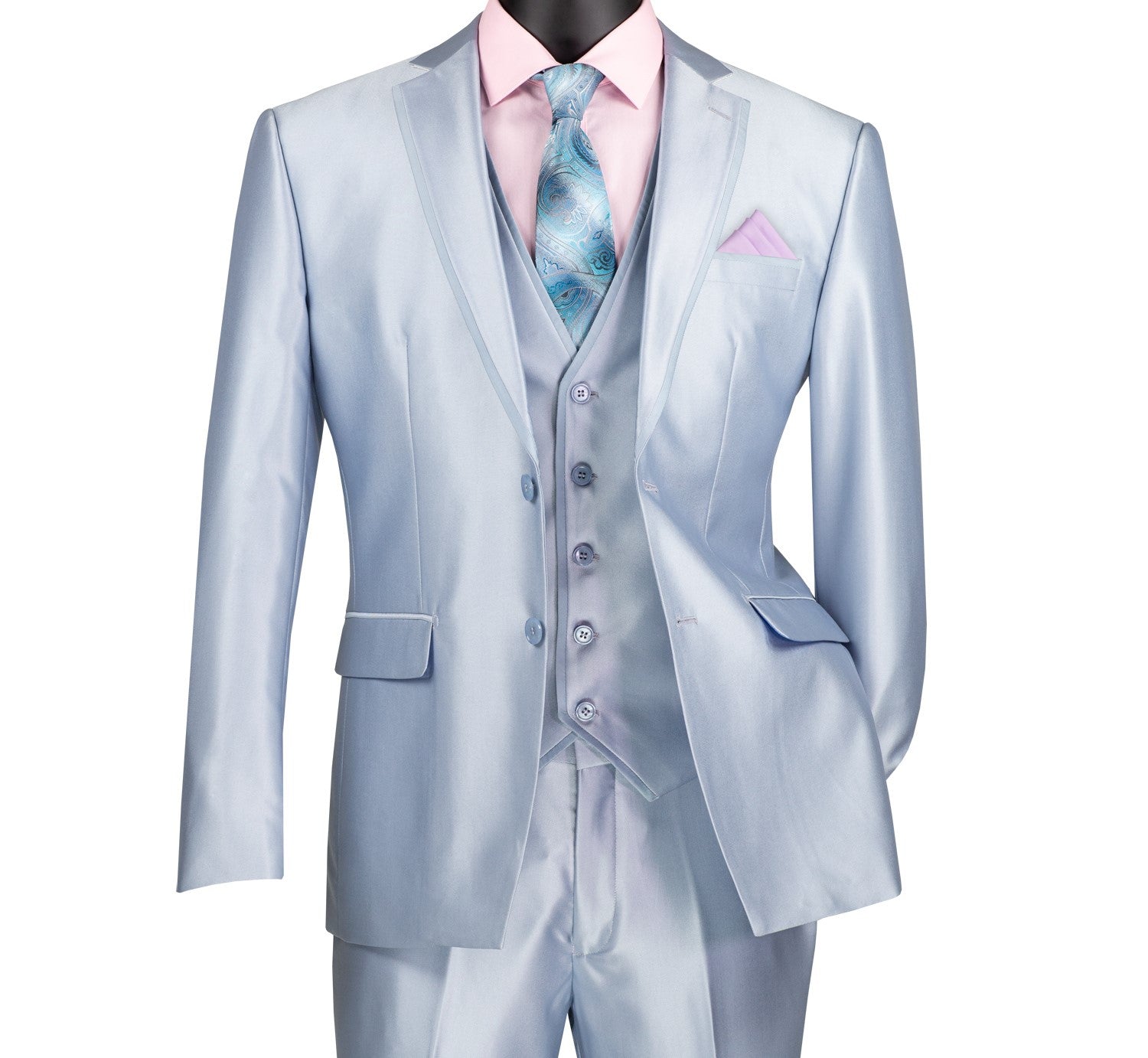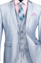 Centaurus Collection: Ice Blue 3-Piece Solid Satin Look Slim Fit Suit with Fancy Vest