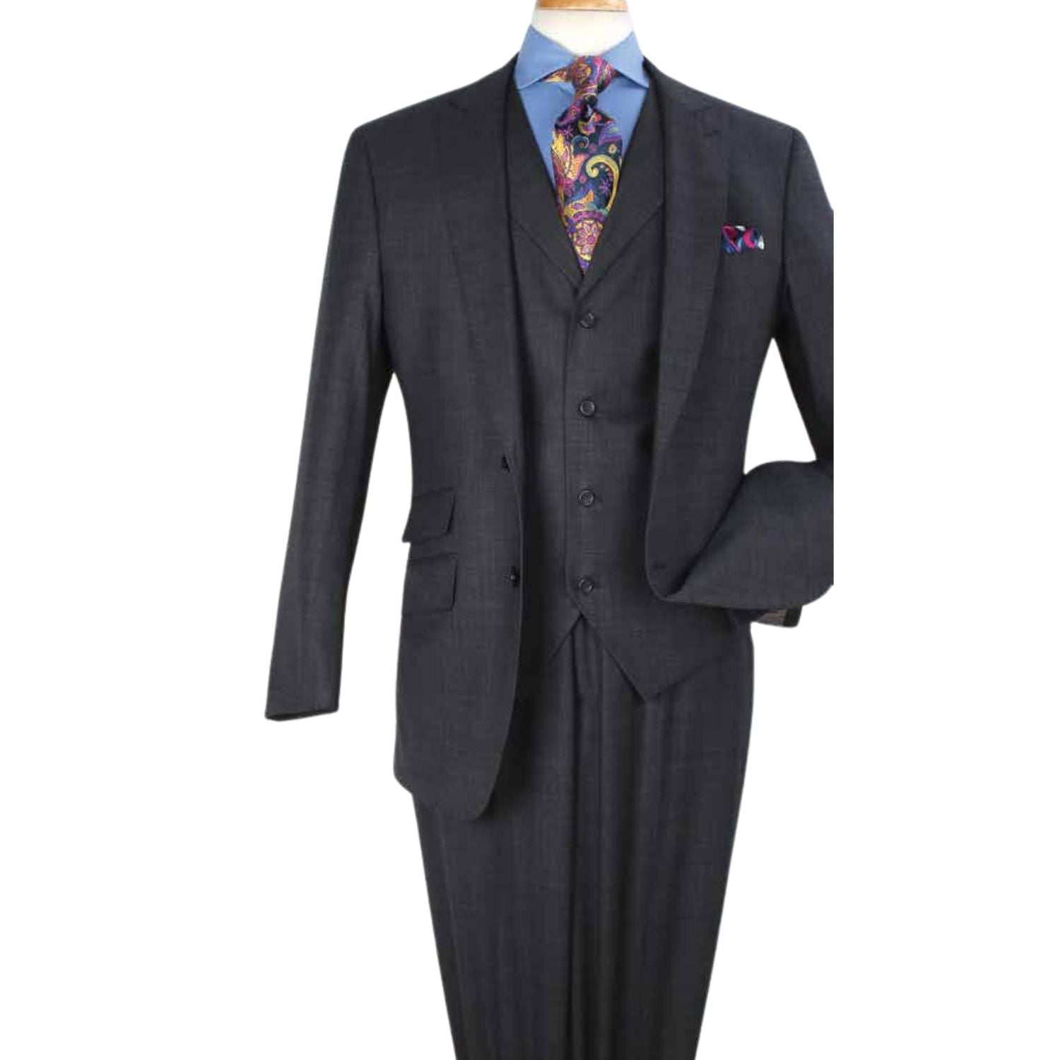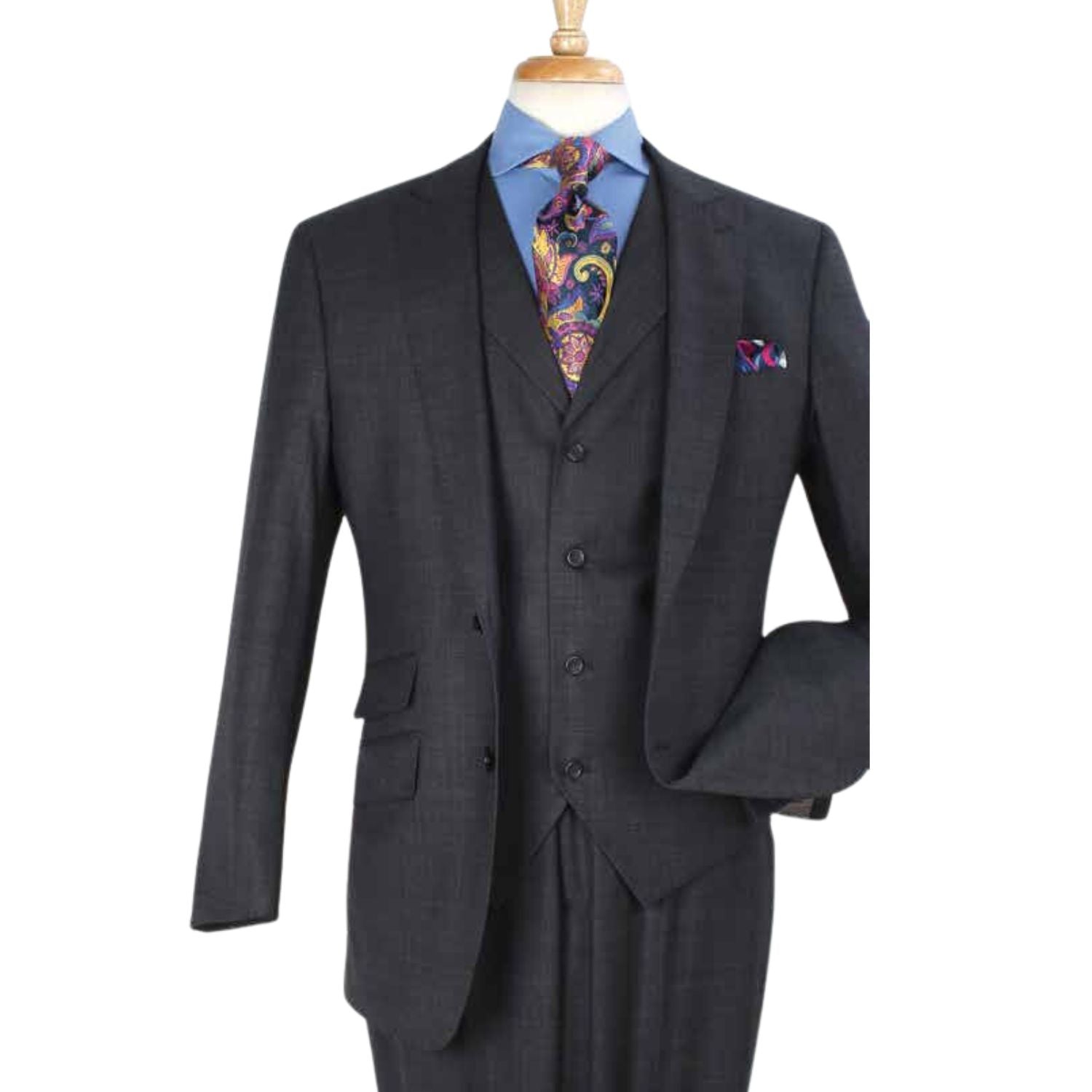 Charcoal Stripe High Fashion Three-Piece Wool Suit with Vest