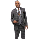 Charisma Grey Plaid Three-Piece Suit with Double-Breasted Vest