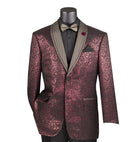 Chateau Collection: Burgundy Jacquard Fabric Single Breasted Regular Fit Blazer
