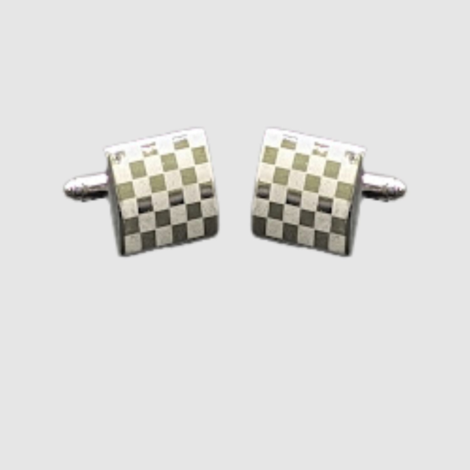 Introducing the Checkerboard Silver Cufflinks from Suits & More, where classic style meets striking detail. These cufflinks boast a unique checkerboard pattern in alternating shades of gray, meticulously encased in a polished silver frame. A perfect accessory for those who appreciate precision and a touch of distinct style in their formal wear.
