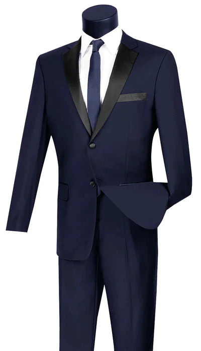 ChicCovenant Collection: Navy 2 Piece Solid Color Single Breasted Slim Fit Tuxedo