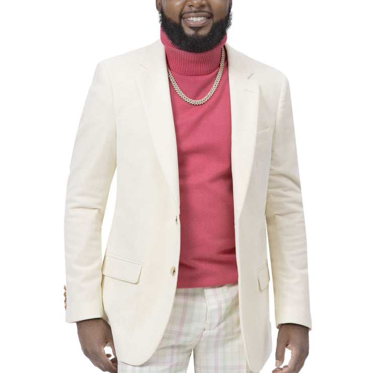 Cream Solid Velvet Blazer J134