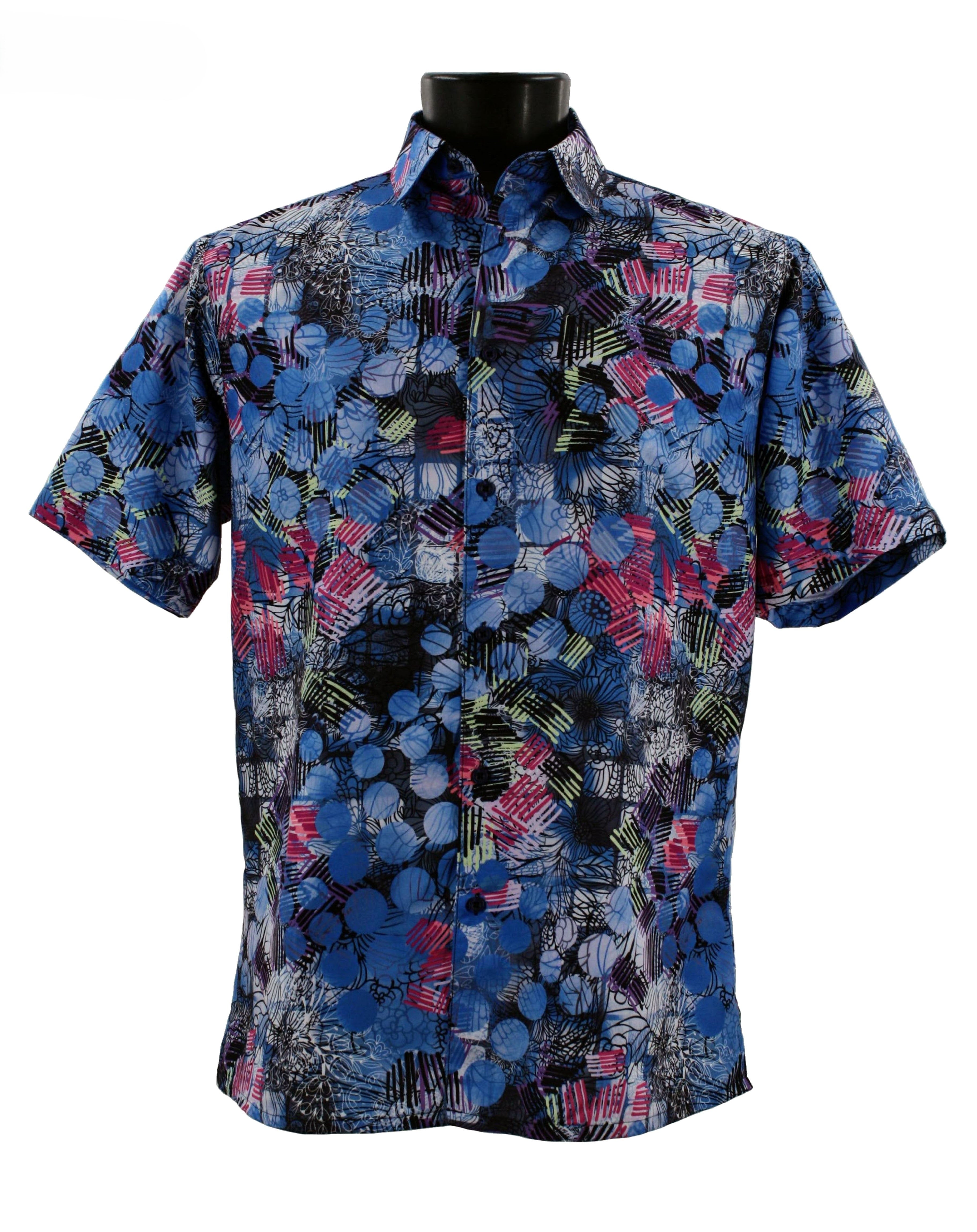 Circulo Collection Blue Circle Accent Men's Short Sleeve Printed Shirt
