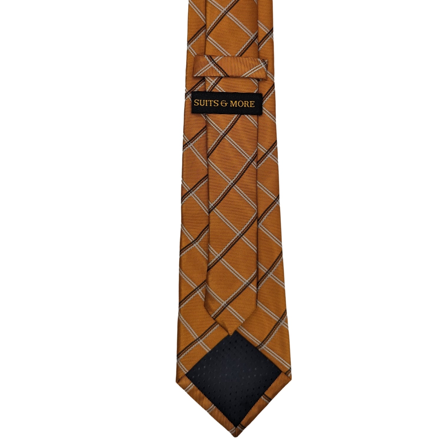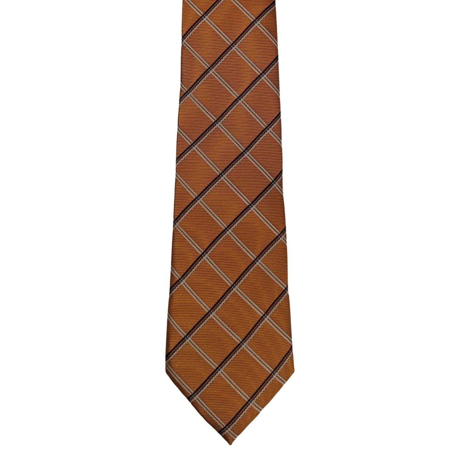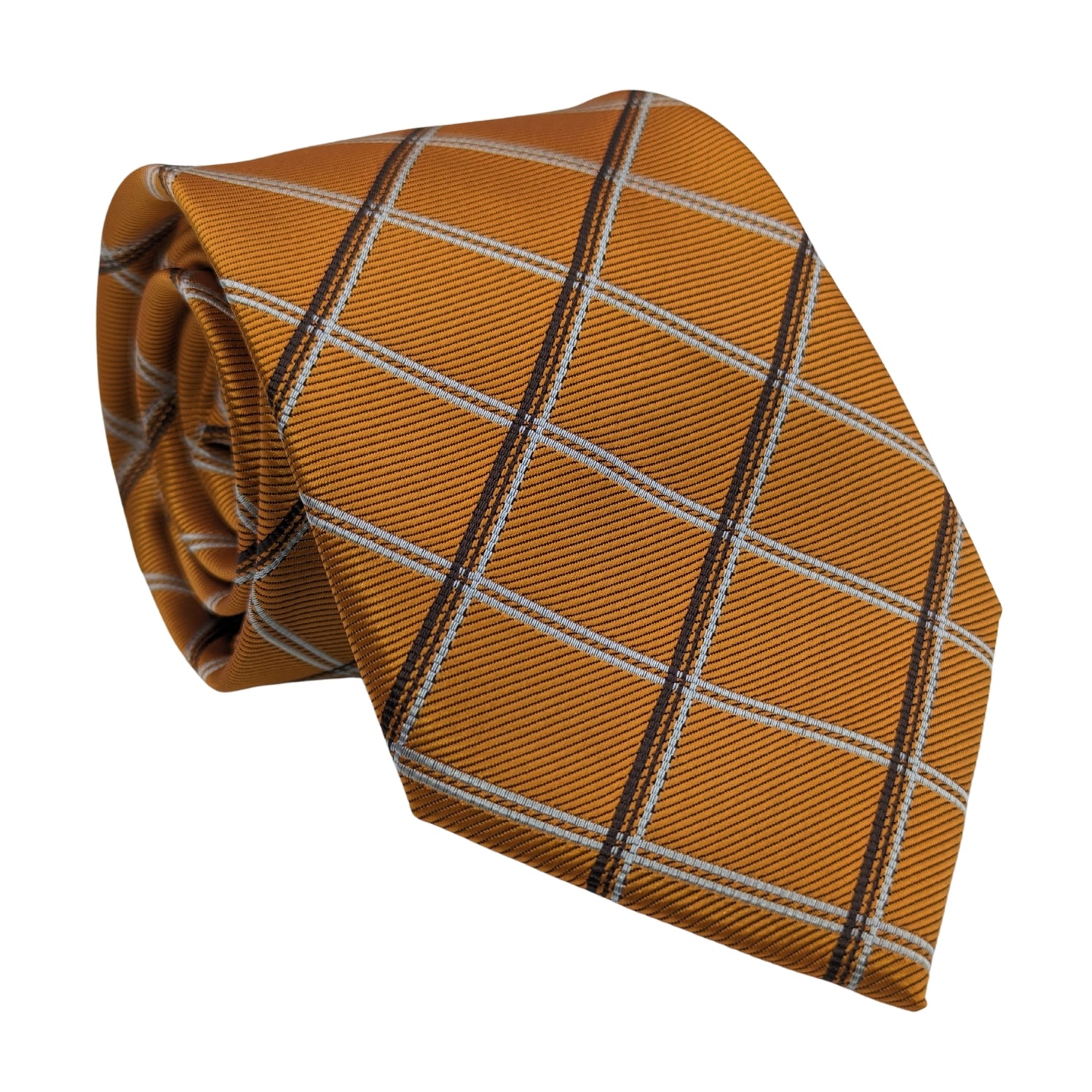 Classic Allure Collection: Orange Diamond Pattern Tie With Black And Grey Stitching