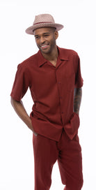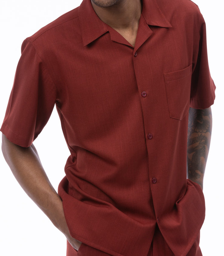 Classic Collection: Wine Walking Suit 2 Piece Solid Color Short Sleeve Set 696