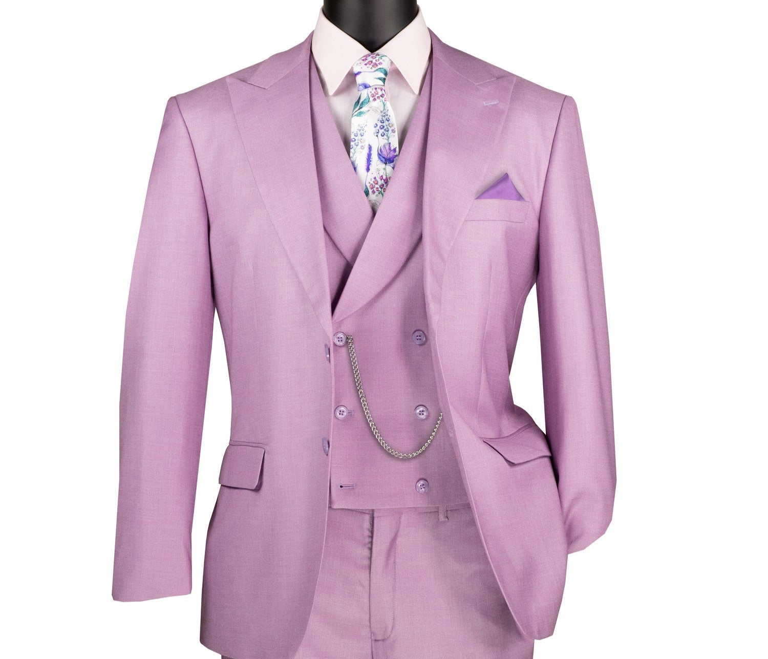 Classique Collection: Lavender 3 Piece Solid Color Single Breasted Modern Fit Suit