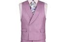 Step into a world of refinement with the lavender three-piece suit from the Classique Collection. With a luxurious wool feel and a textured weave, this suit offers both style and comfort. The single-breasted jacket features a peak lapel for a classic touch, while the fancy vest and adjustable waistband ensure a modern and flattering fit. Perfect for any formal occasion or celebration, pair this suit with bold-colored accessories for a standout look.