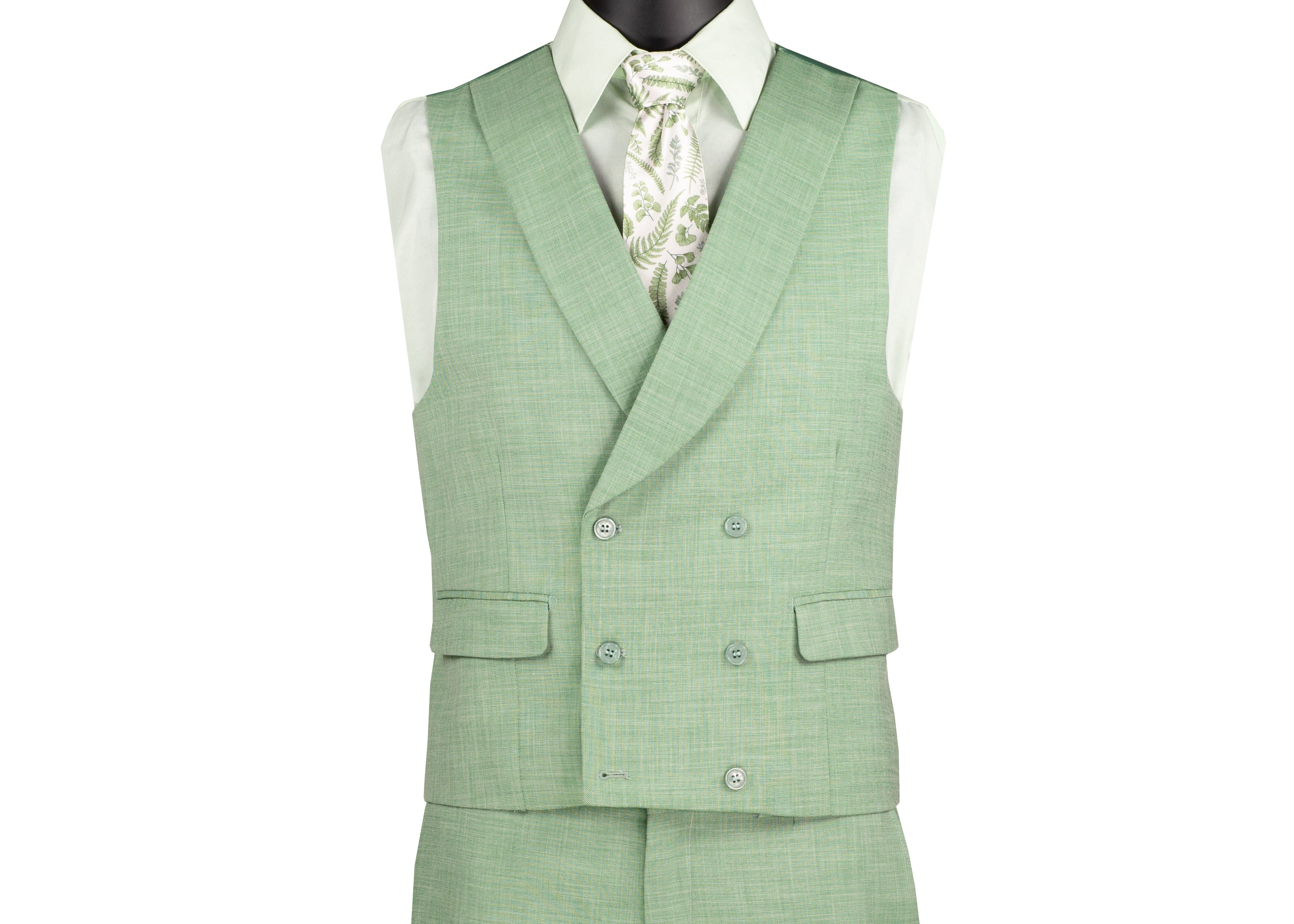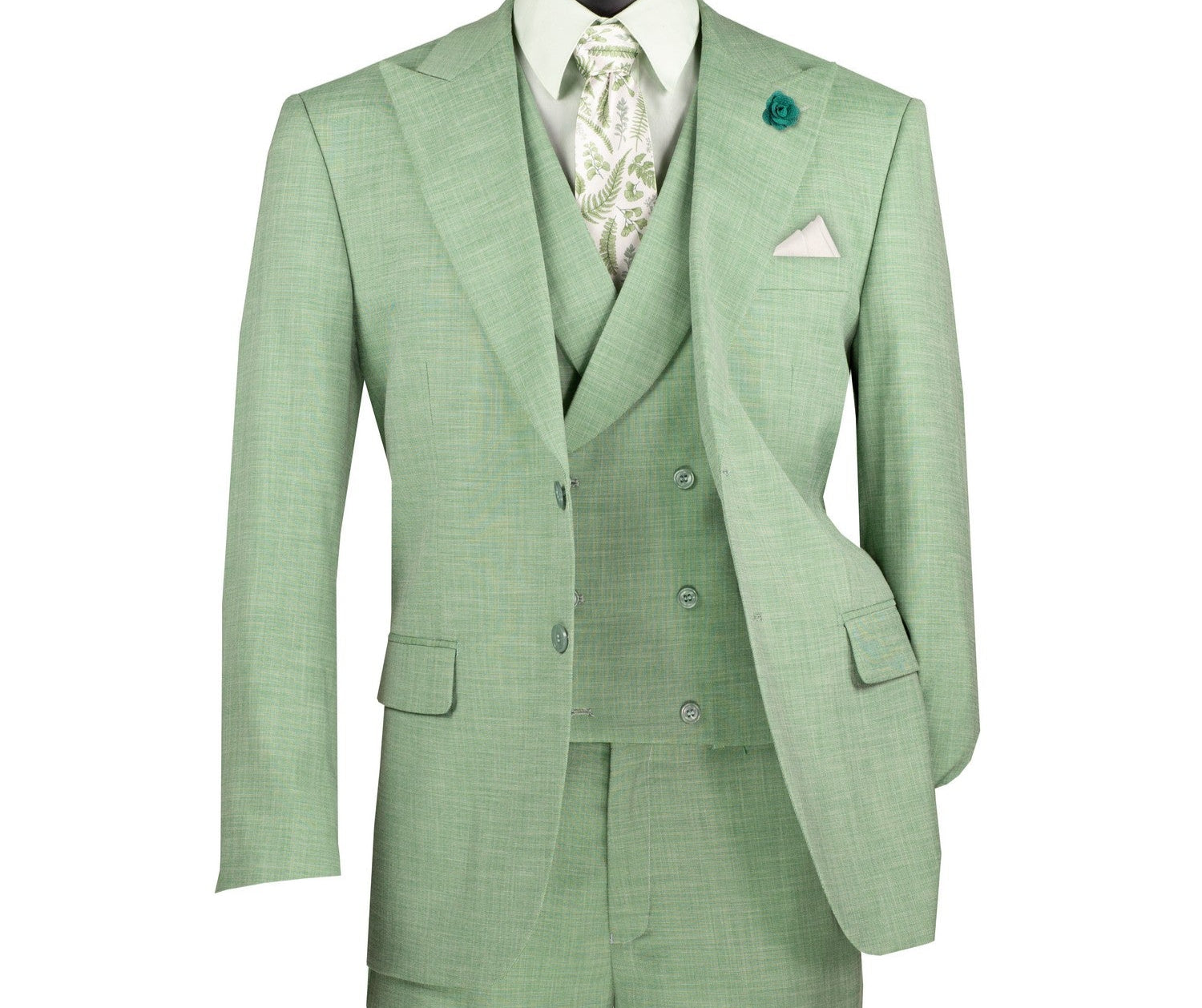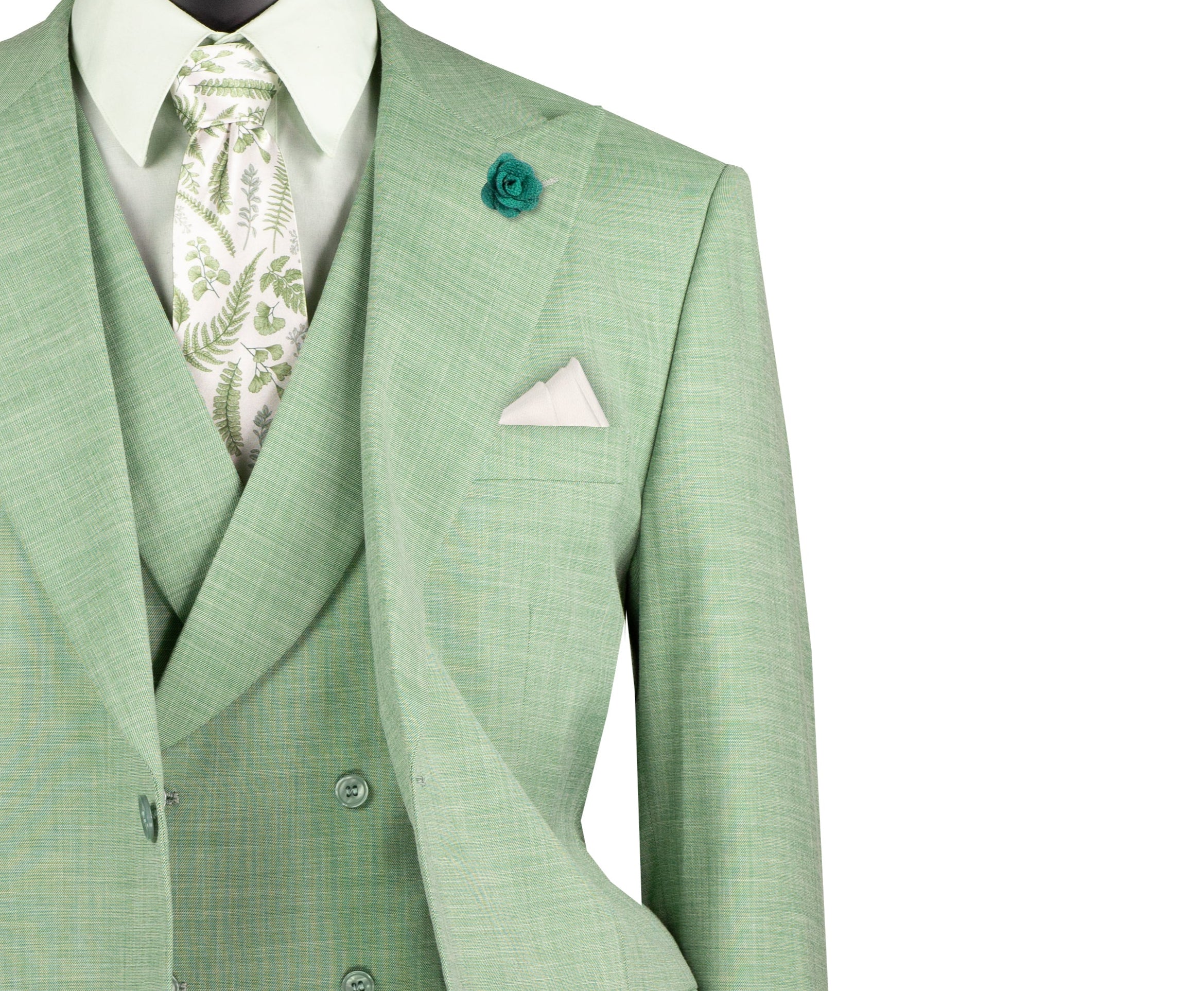 Step into a world of refined sophistication with this light green 3-piece suit from the Classique Collection. Featuring a modern fit, this suit is tailored with a stretch fabric for comfort and flexibility. The fancy vest and peak lapel add a touch of elegance, making this suit perfect for formal occasions, weddings, or stylish evenings. Its luxurious wool feel and solid textured weave ensure you’re both comfortable and impeccably dressed.