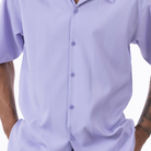 Men's 2 Piece Short Sleeve Walking Suit Tone on Tone Vertical Stripes in Lavender - 2306