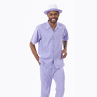 Columba Collection: Men's 2 Piece Short Sleeve Walking Suit Tone on Tone Vertical Stripes in Lavender