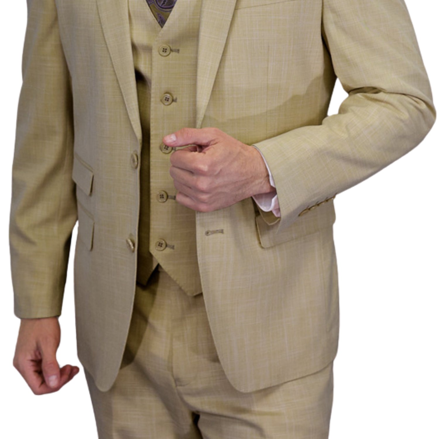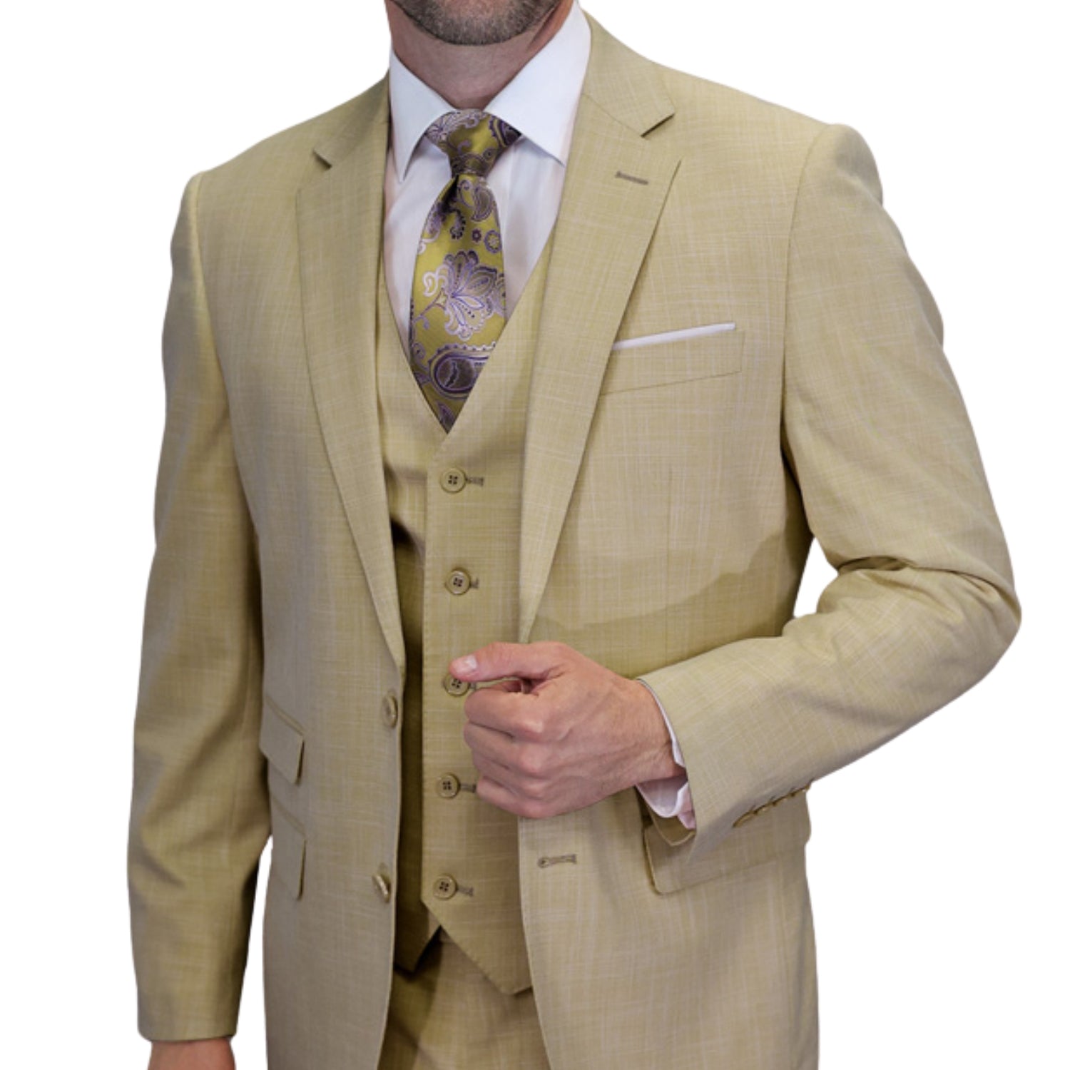 Comet Couture Collection: Tan Sharkskin Italian Wool 3-Piece Suit – Modern Fit
