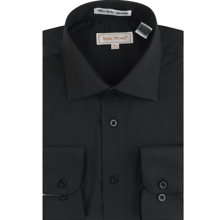 Coronis Collection: Henry Picard Black Solid Long Sleeve Button-Up Shirt with Front Pocket