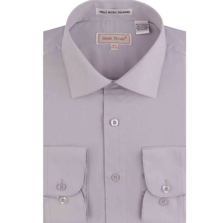 Coronis Collection: Henry Picard Silver Solid Long Sleeve Button-Up Shirt with Front Pocket