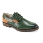 Cortello Collection: Green Plain Toe Leather Lace-Up Shoe