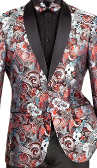 Cosmos Collection: Burgundy 2 Button Paisley Pattern Single Breasted Modern Fit Blazer