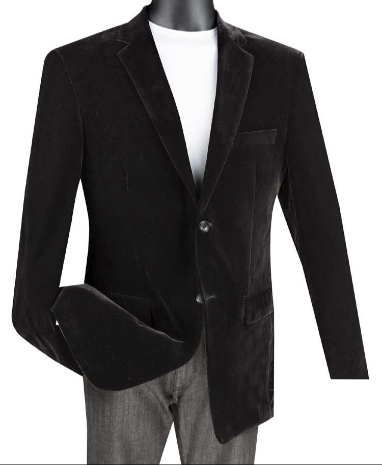 Countess Collection: Black Velvet Solid Color Single Breasted Regular Fit Blazer