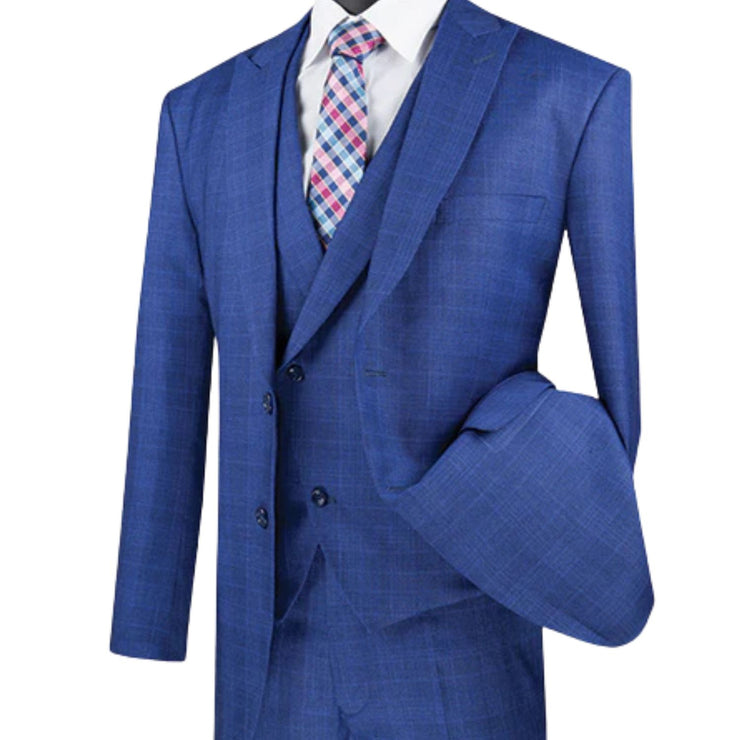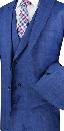 Countess Couture Collection: Blue 3 Piece Glen Plaid Single Breasted Modern Fit Suit