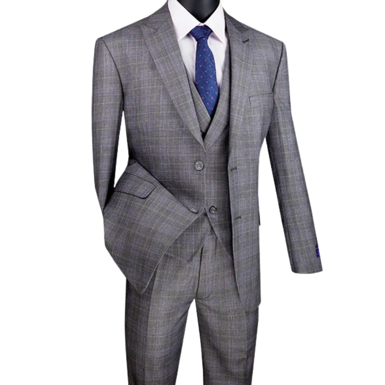 Countess Couture Collection: Grey 3 Piece Glen Plaid Single Breasted Modern Fit Suit