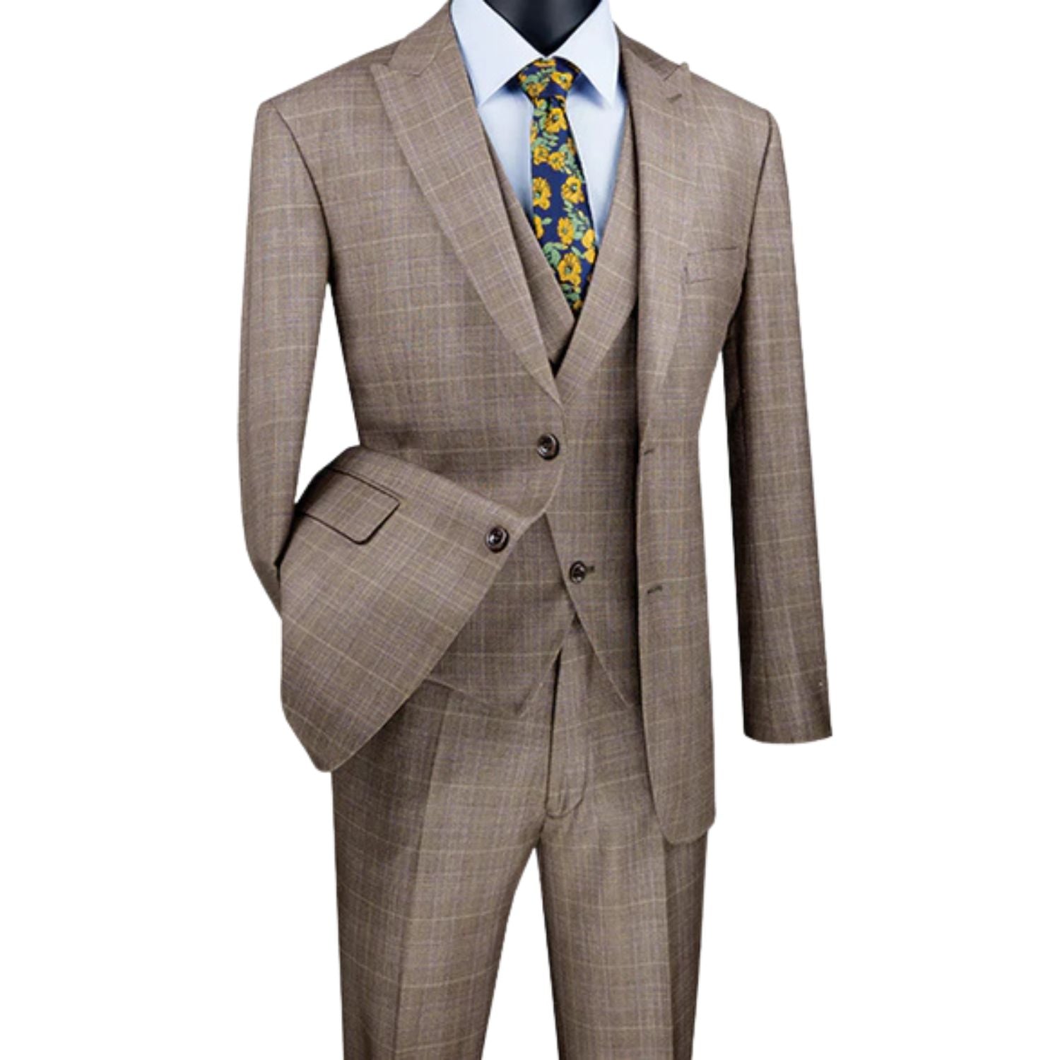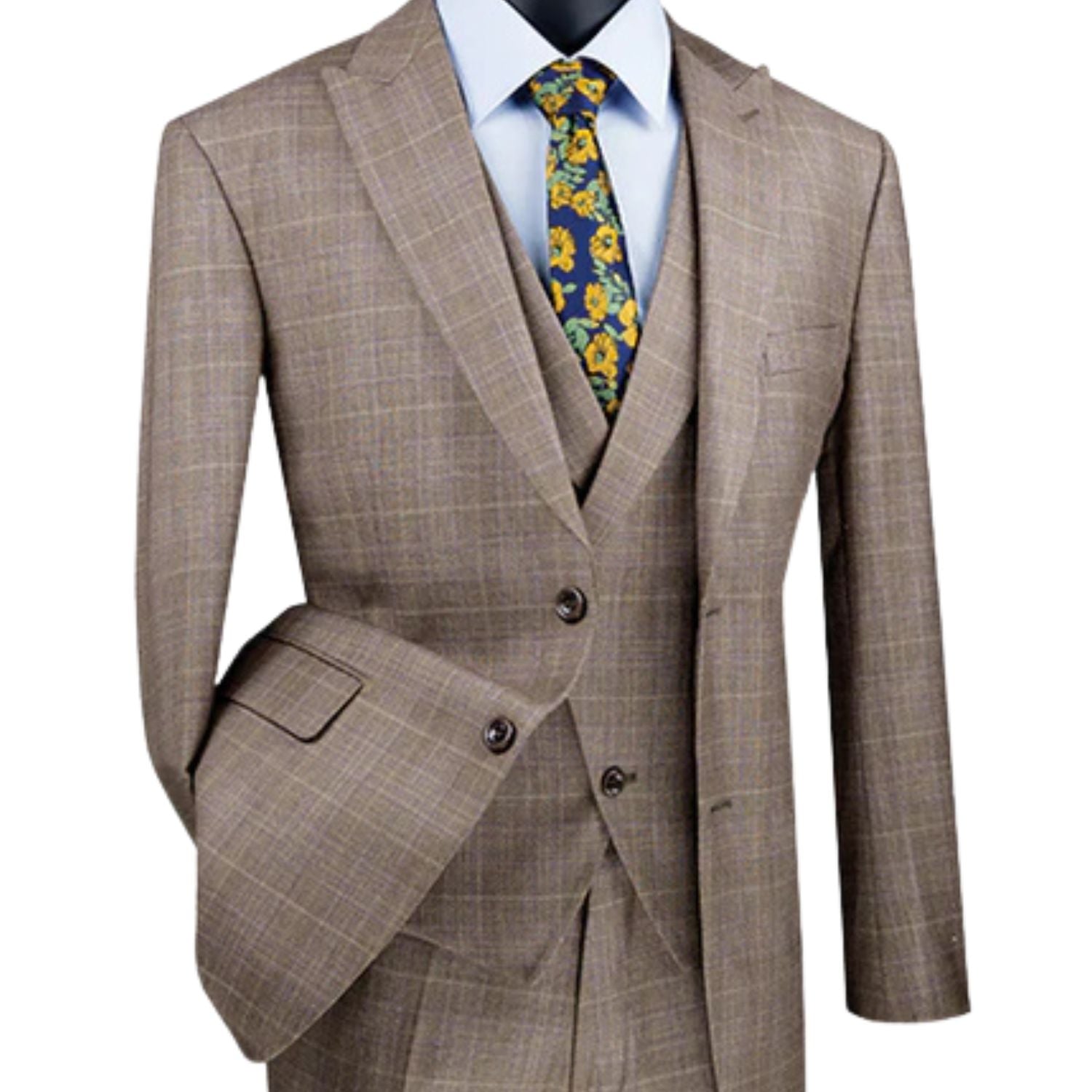 Countess Couture Collection: Tan 3 Piece Glen Plaid Single Breasted Modern Fit Suit