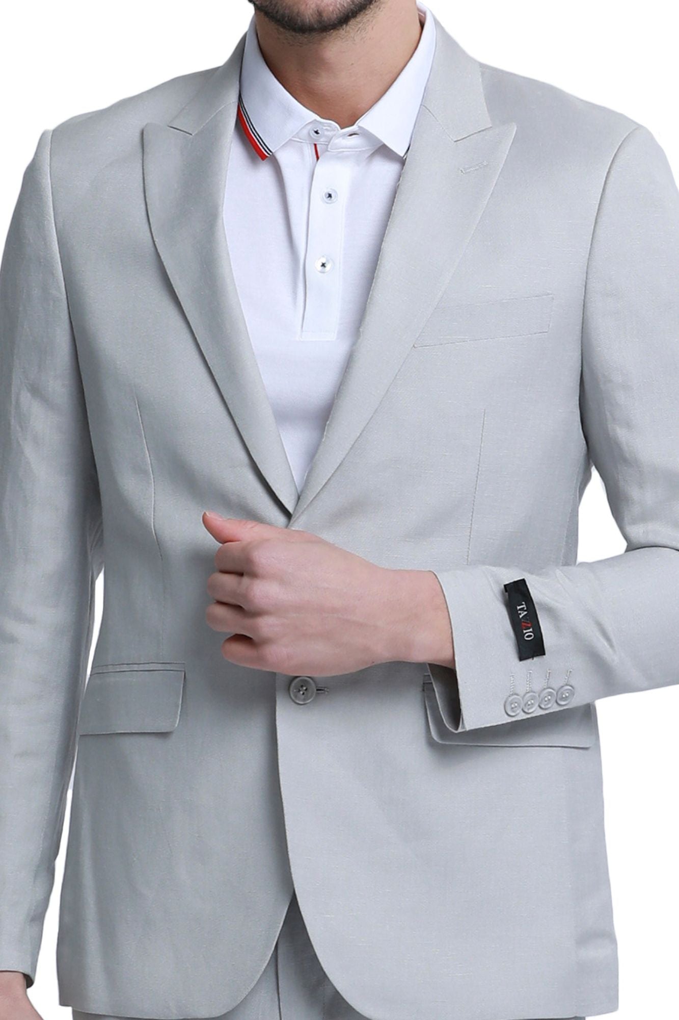 Pants: Tailored in a slim fit to match the jacket, offering a modern and flattering silhouette that complements the vibrant Grey color.