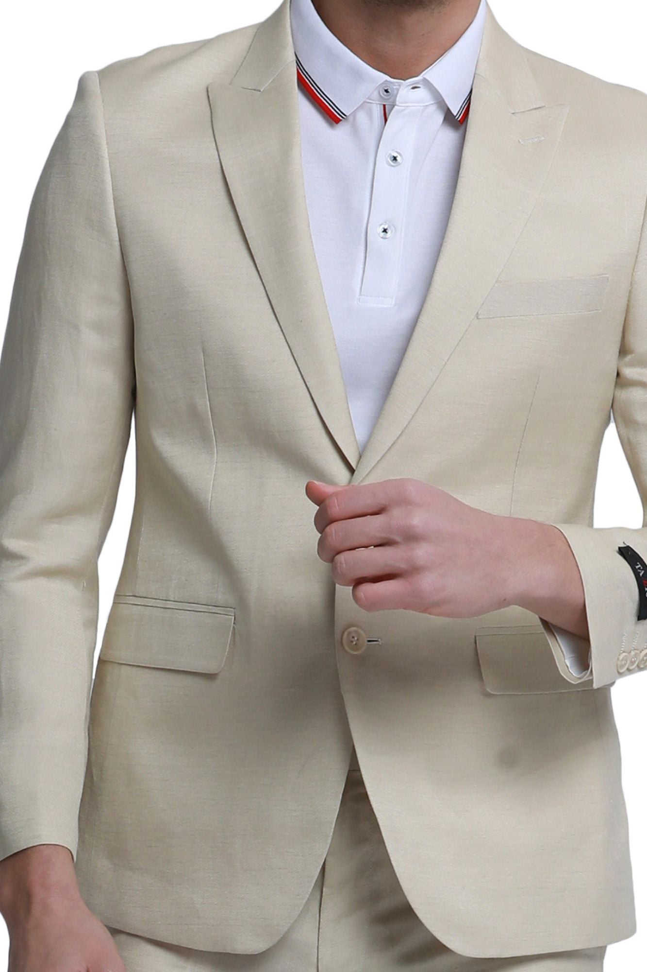 Couturious Collection: 2-Piece Slim Fit Solid Suit For Men In Tan